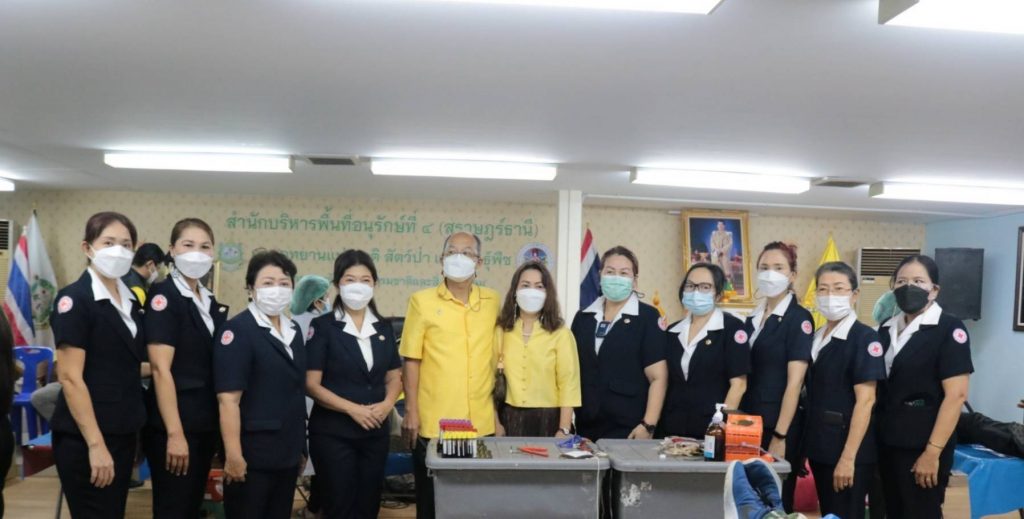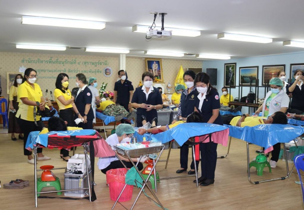 ที่ปรึกษาฯ สมาชิกเหล่ากาชาดจังหวัดสุราษฎร์ธานีและ สมาชิกชมรมแม่บ้านมหาดไทยจังหวัดสุราษฎร์ธานีได้ไปเยี่ยมและให้กำลังใจ แก่เจ้าหน้าที่ธนาคารเลือด รพ.สุราษฎร์ธานี และเจ้าหน้าที่สาธารณสุขที่มาร่วมหน่วยรับบริจาคโลหิต ดวงตา และอวัยวะ ณ หน่วยรับบริจาคโลหิต สำนักบริหารพื้นที่อนุรักษ์ที่ 4 (สุราษฎร์ธานี)อำเภอเมือง จังหวัดสุราษฎร์ธานี โดยมี นายธัญนรินทร์ ณ นคร ผู้อำนวยการสำนักบริหารพื้นที่อนุรักษ์ที่ 4(สุราษฎร์ธานี) และคณะ ให้การต้อนรับ พร้อมนี้