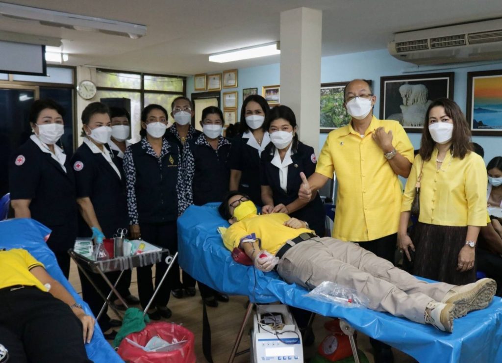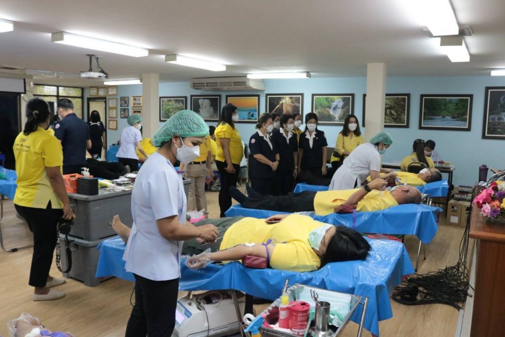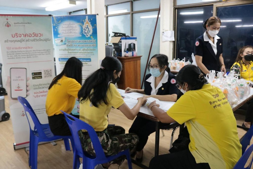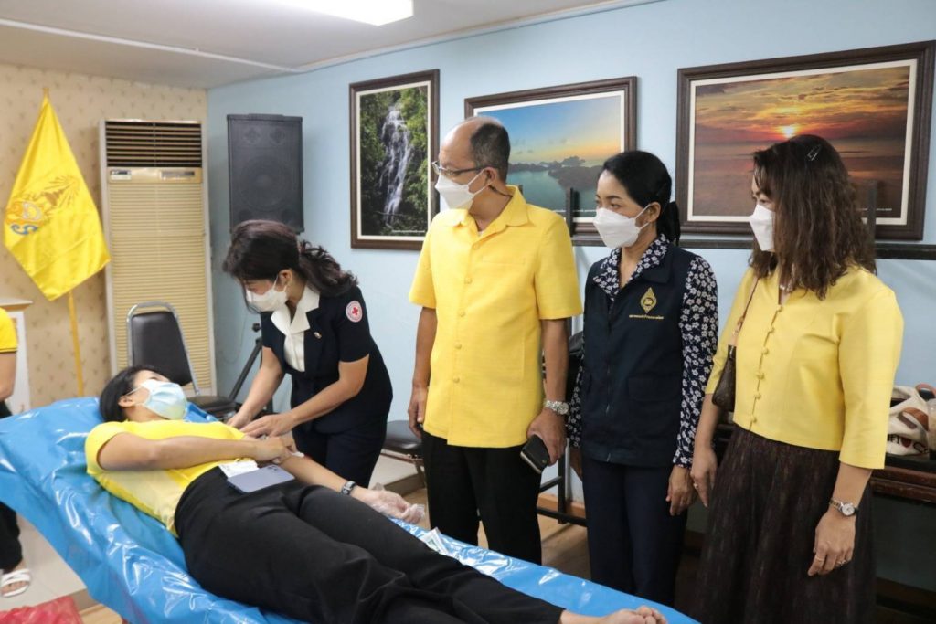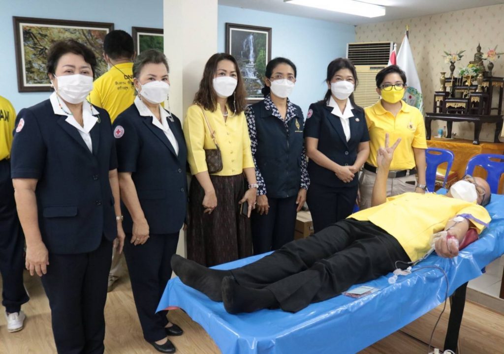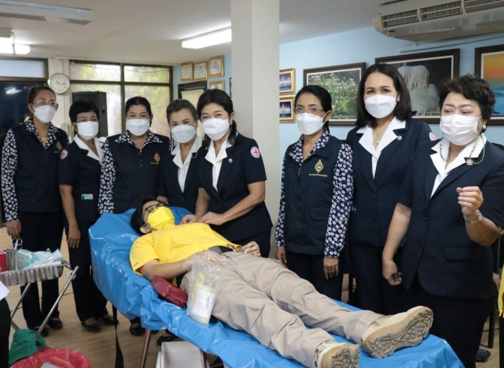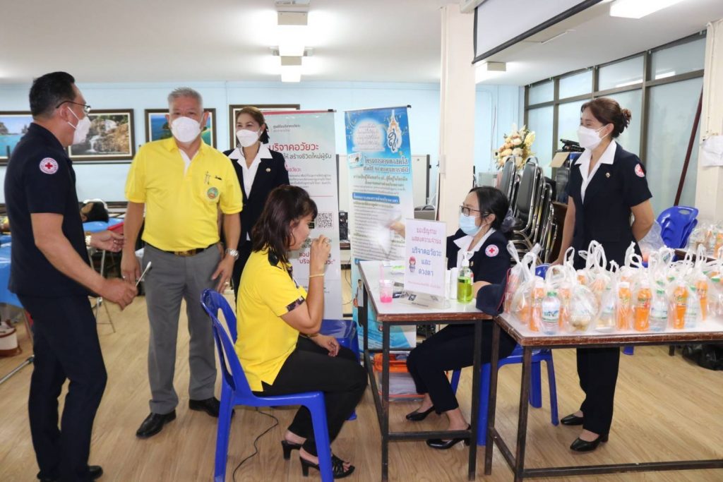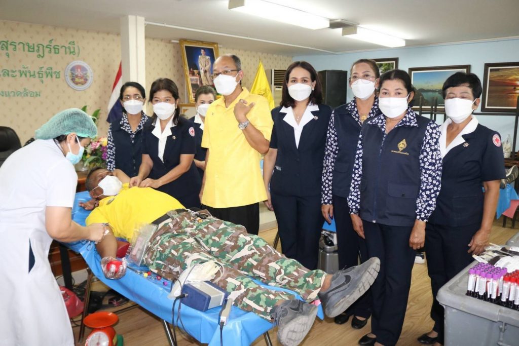 นายกเหล่ากาชาดจังหวัดสุราษฎร์ธานี/ประธานแม่บ้านมหาดไทยจังหวัดสุราษฎร์ธานีได้ให้กำลังใจแก่ผู้ที่มาบริจาคโลหิต ดวงตา และอวัยวะ ด้วย