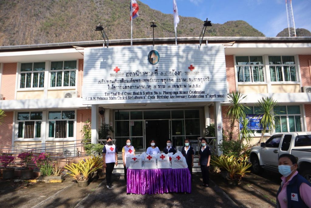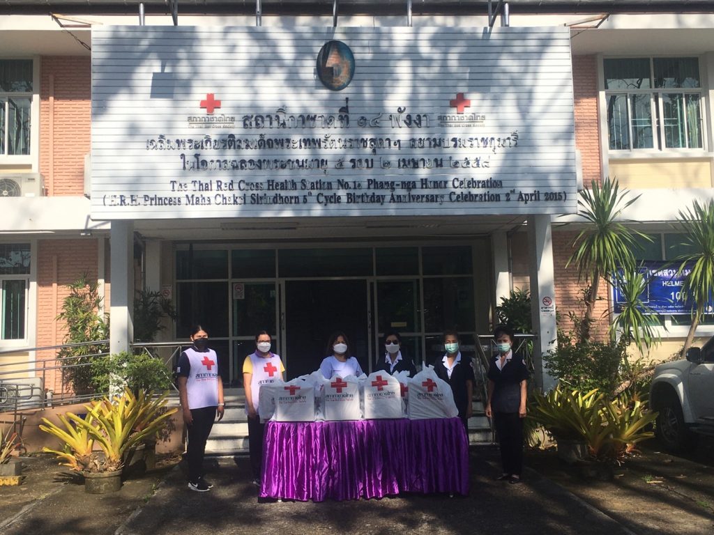 วันอังคารที่ 8 กุมภาพันธ์ 2565 นางวิภาดา ทิพญพงศ์ธาดา นายกเหล่ากาชาดจังหวัดพังงา มอบหมายให้นางนงนุช มายะการ รองนายกเหล่ากาชาดจังหวัดพังงา พร้อมด้วยกรรมการและสมาชิกเหล่ากาชาดจังหวัดพังงา มอบชุดธารน้ำใจ กู้ชีวิตฝ่าวิกฤตโควิด -19 ซึ่งได้รับการสนับสนุนจากสถานีกาชาดที่ 14 พังงา เฉลิมพระเกียรติฯ โดยการร้องขอความช่วยเหลือผ่านแอปพลิเคชั่น “พ้นภัย” จำนวน 9 ชุด ให้กับผู้กักตนเองและสัมผัสเสี่ยงสูงในพื้นที่ตำบลหล่อยูง อำเภอตะกั่วป่า จังหวัดพังงา