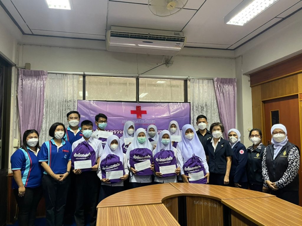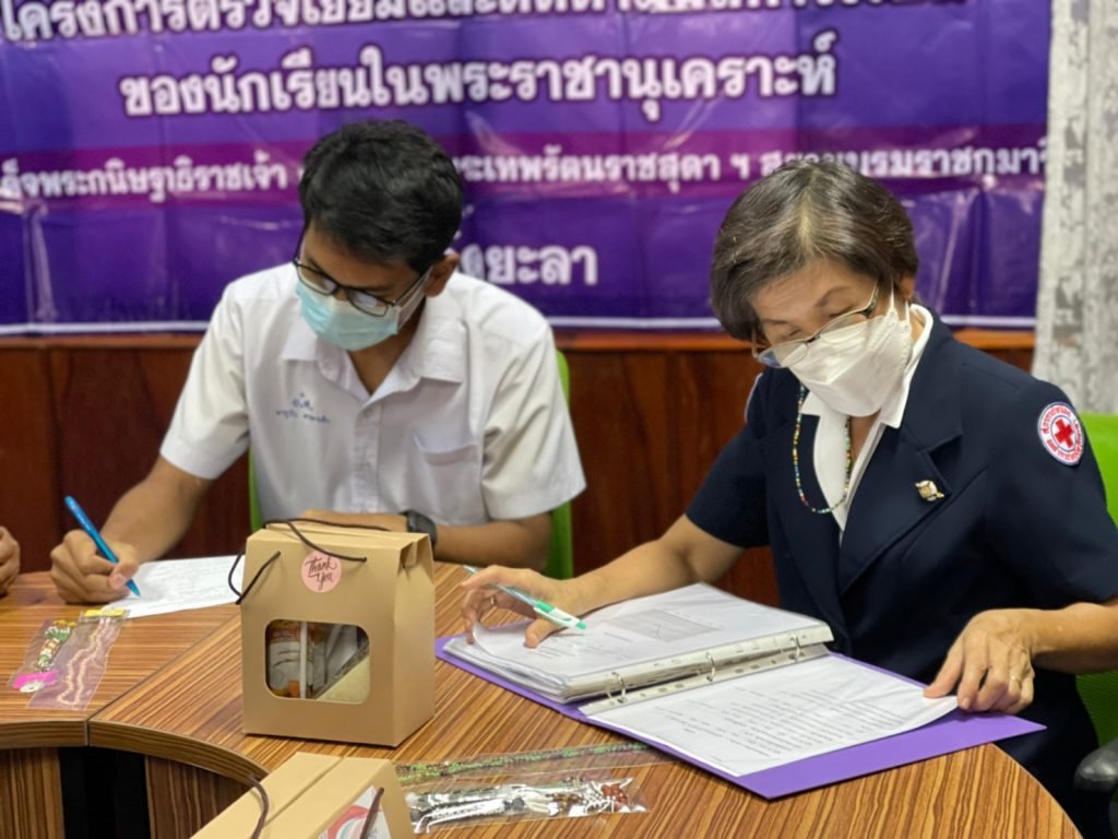 วันที่ 14 ธันวาคม 2564 ผศ.ดร.ทิพยวรรณ นิลทยา นายกเหล่ากาชาดจังหวัดยะลา มอบหมายให้ นางอาสีกี บุญโรภาคย์ กรรมการเหล่ากาชาดจังหวัดยะลา/ภริยานายอำเภอรามัน พร้อมด้วยสมาชิกเหล่ากาชาดจังหวัดยะลา สมาชิกสมาคมแม่บ้านมหาดไทยจังหวัดยะลา ตรวจเยี่ยมให้กำลังใจนักเรียนในพระราชานุเคราะห์ สมเด็จพระกนิษฐาธิราชเจ้า กรมสมเด็จพระเทพรัตนราชสุดาฯ สยามบรมราชกุมารี ประจำปีการศึกษา 2564 ภาคเรียนที่ 1 จำนวน 11 ราย ประกอบด้วย (1)โรงเรียนราชประชานุเคราะห์ 41 จำนวน 2 ราย (2) โรงเรียนยะหาศิรยานุกูล จำนวน 9 ราย ในโอกาสนี้เหล่ากาชาดจังหวัดยะลามอบเงินช่วยเหลือและมอบชุดยังชีพอุปโภคบริโภค รายละ 1 ชุด