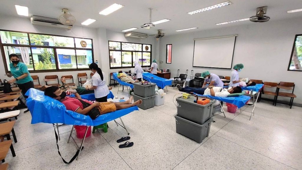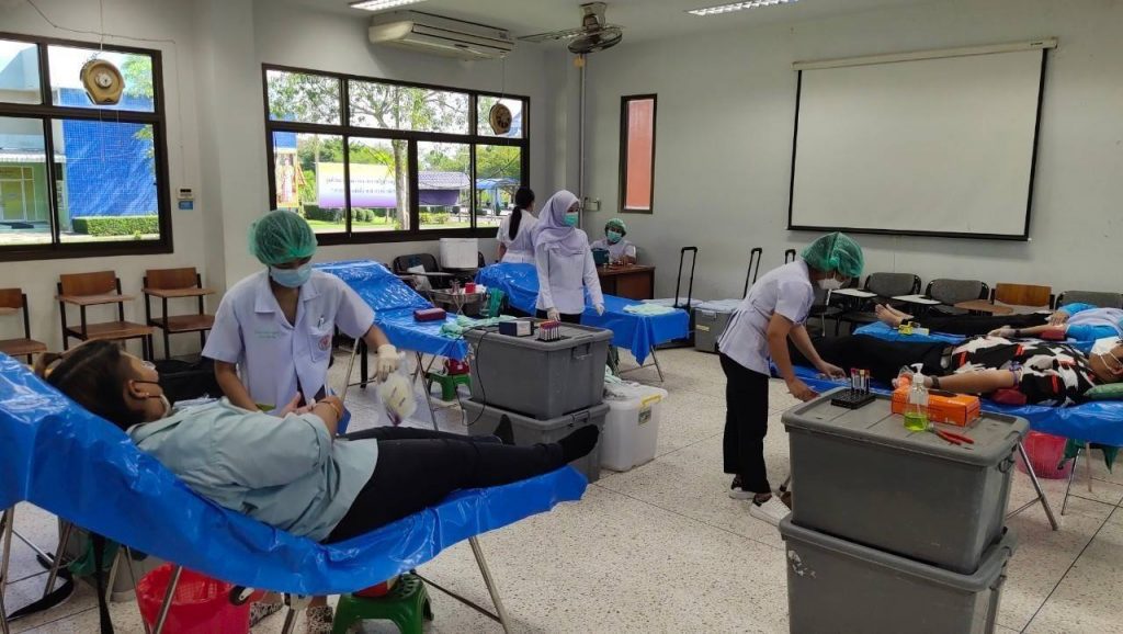 วันที่ 23 กุมภาพันธ์ 2565 นางอุรสา จินโต นายกเหล่ากาชาดจังหวัดสุราษฎร์ธานี มอบหมายให้ ที่ปรึกษา/กรรมการ/สมาชิกเหล่ากาชาดจังหวัดฯและ ธนาคารเลือด โรงพยาบาลสุราษฎร์ธานีหอการค้าจังหวัดสุราษฎร์ธานี และ YEC สุราษฎร์ธานีร่วมกับมหาวิทยาลัยราชภัฏสุราษฎร์ธานี จัดกิจกรรมรับบริจาคโลหิต ดวงตา และอวัยวะ”มั่นใจ ปลอดภัย บริจาคโลหิต ฝ่าวิกฤต COVID-19 ไปด้วยกัน”เพื่อเป็นการจัดหาโลหิตสำหรับใช้ในการรักษาผู้ป่วยของโรงพยาบาลในจังหวัดสุราษฎร์ธานี