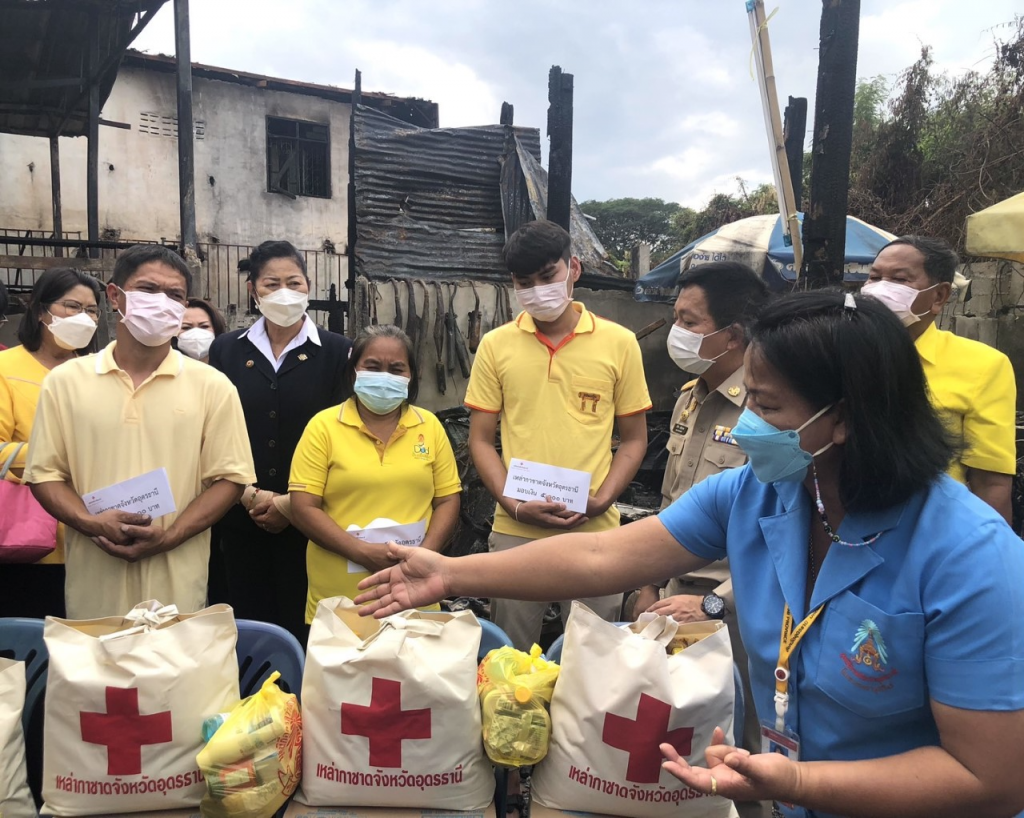 วันที่ 18 กุมภาพันธ์ 2565 นางอรจิรา ศิริมงคล นายกเหล่ากาชาดจังหวัดอุดรธานี มอบหมายให้คณะกรรมการและเจ้าหน้าที่เหล่ากาชาดจังหวัดอุดรธานี ลงพื้นที่เยี่ยมเป็นกำลังใจพร้อมมอบเงิน และสิ่งของให้กับครอบครัวผู้ประสบเหตุอัคคีภัย โดย นายสามารถ สุวรรณมณี นายอำเภอเมืองอุดรธานี เป็นประธานพิธีมอบถุงยังชีพพระราชทานมูลนิธิราชประชานุเคราะห์ พร้อมได้กล่าวให้กำลังใจกับครอบครัวผู้ประสบเหตุอัคคีภัย พร้อมนี้ นายอริยะ แต้สุวรรณ รองนายกเทศมนตรีนครอุดรธานี และส่วนเกี่ยวข้องร่วมเยี่ยมให้กำลังใจผู้ประสบภัย ซึ่งเหล่ากาชาดจังหวัดอุดรธานี เบื้องต้นมอบเงินช่วยเหลือ จำนวน 5,000 บาท จำนวน 4 ราย (เสียหายทั้งหลัง) พร้อมถุงยังชีพ ทั้งนี้ พัฒนาสังคมและความมั่นคงของมนุษย์จังหวัดอุดรธานี มอบเงินช่วยเหลือ จำนวน 3,000 บาท ทุกราย สำนักงานป้องกันและบรรเทาสาธารณภัยจังหวัดอุดรธานี และห้างเซฟมาร์ท ซูเปอร์สโตร์ อุดรธานี มอบเครื่องอุปโภคบริโภค ให้แก่ผู้ประสบภัยทุกราย ณ บ้านเลขที่ 77/1, 77/2, 77/3 และ 77/4 หมู่ที่ 2 ตำบลหมากแข้ง อำเภอเมืองอุดรธานี จังหวัดอุดรธานี