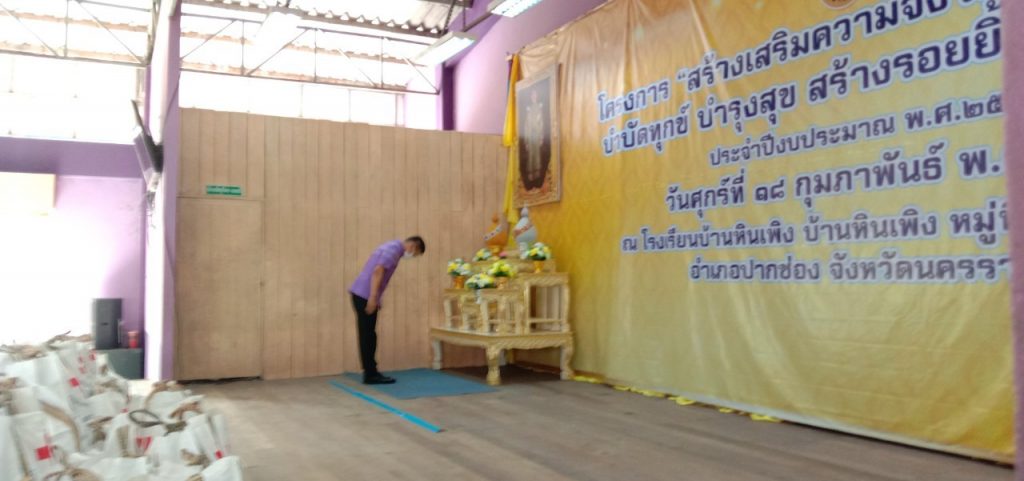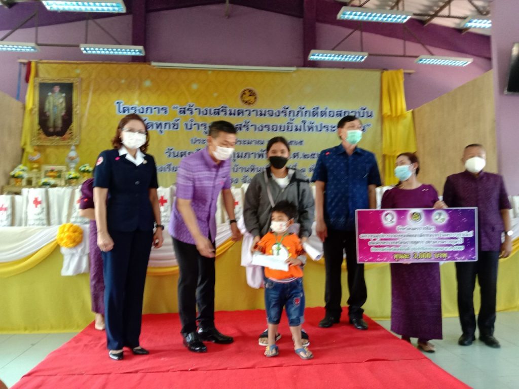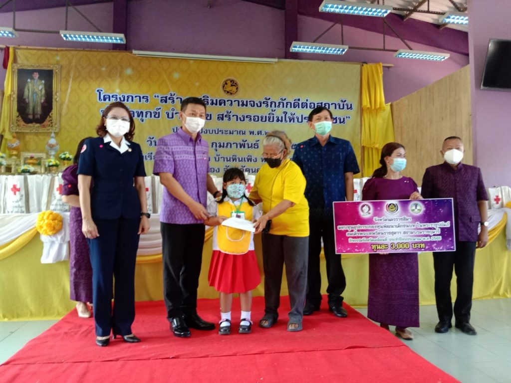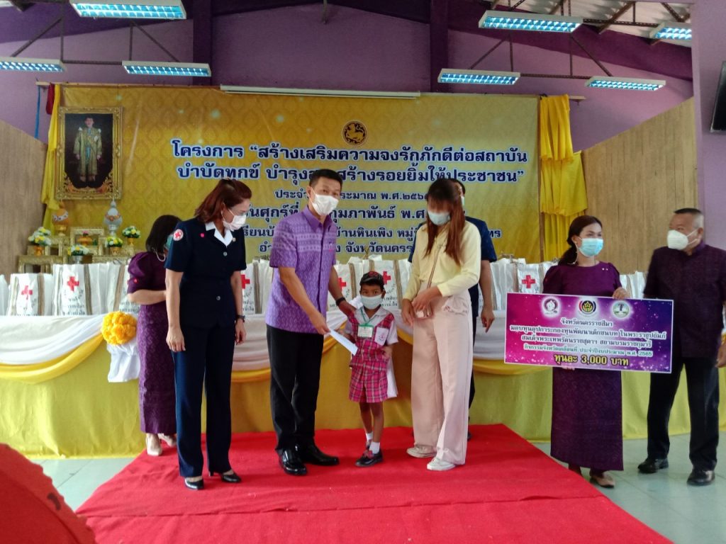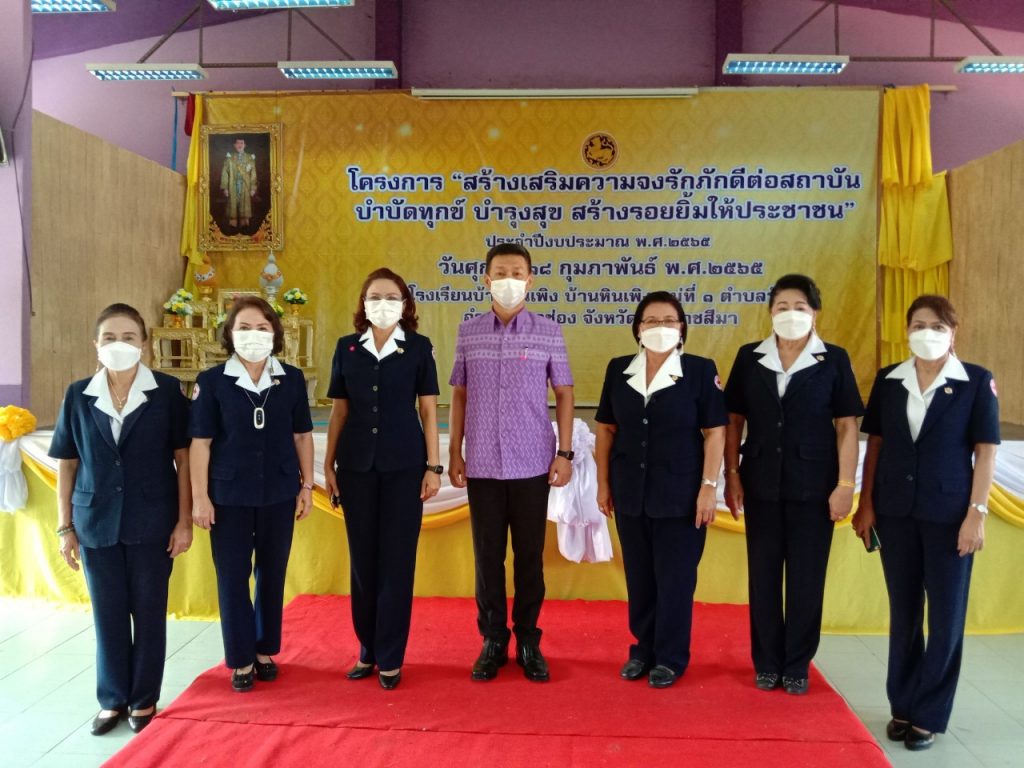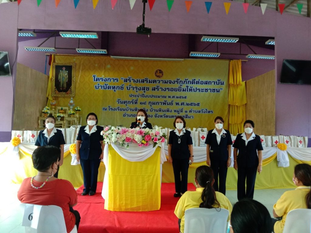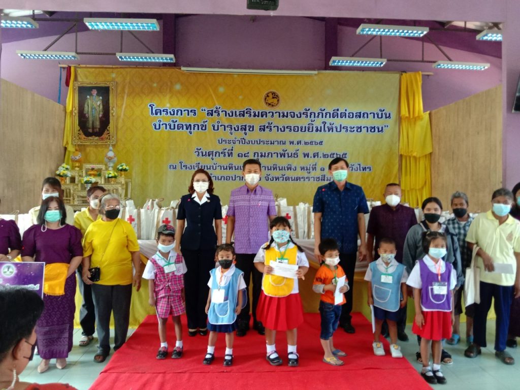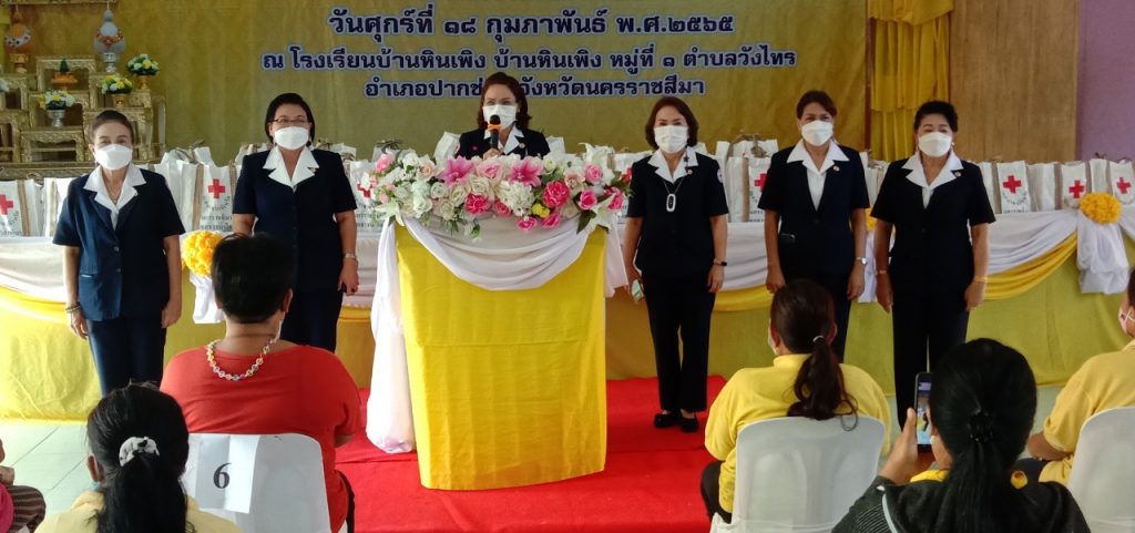 วันที่ 18 กุมภาพันธ์ 2565 นางณัฏฐินีภรณ์ จันทรโณทัย นายกเหล่ากาชาดจังหวัดนครราชสีมา ได้มอบหมายให้ ร.อ.หญิงจิตชนก กิจวิรัตน์ กรรมการเหล่ากาชาดจังหวัดนครราชสีมา พร้อวด้วยคณะกรรมการและสมาชิกเหล่ากาชาด จังหวัดนครราชสีมา ร่วมโครงการ “สร้างเสริมความจงภักดีดีต่อสถาบัน บำบัดทุกข์ บำรุงสุข สร้างรอยยิ้ม ให้ประชาชน” (จังหวัดเคลื่อนที่) ณ โรงเรียนบ้านหินเพิง ม.1 ตำบลวังไทร อำเภอปากช่อง จังหวัดนครราชสีมา ในการนี้มี นายวิจิตร กิจวิรัตน์ ปลัดจังหวัดนครราชสีมาเป็นประธาน โดยมีกรรมการและสมาชิกกิ่งกาชาดอำเภอปากช่อง ส่วนราชการ ให้การต้อนรับและอำนวยความสะดวกเป็นอย่างดียิ่ง