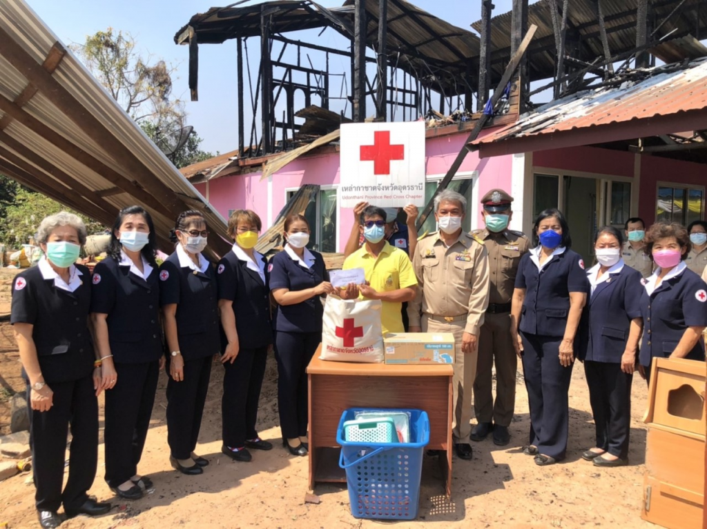 วันที่ 1 มีนาคม 2565 นางอรจิรา ศิริมงคล นายกเหล่ากาชาดจังหวัดอุดรธานี มอบหมายให้นางจริญญา กังน้อย รองนายกเหล่ากาชาดจังหวัดอุดรธานี พร้อมด้วยคณะกรรมการและเจ้าหน้าที่เหล่ากาชาดจังหวัดอุดรธานี ในการนี้ ลงพื้นที่เยี่ยมเป็นกำลังใจพร้อมมอบเงิน และสิ่งของให้กับครอบครัวผู้ประสบเหตุอัคคีภัย โดยมี พันจ่าอากาศเอก วัฒนา หัสจันทร์ ปลัดอาวุโส ผู้แทนนายอำเภอโนนสะอาด เป็นประธานพิธีมอบถุงยังชีพพระราชทานมูลนิธิราชประชานุเคราะห์ พร้อมได้กล่าวให้กำลังใจกับครอบครัวผู้ประสบเหตุอัคคีภัย พร้อมนี้ นางประนอม หล้าหมอก นายกองค์การบริหารส่วนตำบลโคกกลาง และส่วนเกี่ยวข้องร่วมเยี่ยมให้กำลังใจ ซึ่งเหล่ากาชาดจังหวัดอุดรธานี เบื้องต้นมอบเงินช่วยเหลือ จำนวน 5,000 บาท พร้อมถุงยังชีพ ทั้งนี้ พัฒนาสังคมและความมั่นคงของมนุษย์จังหวัดอุดรธานี มอบเงินช่วยเหลือ จำนวน 3,000 บาท ให้แก่ผู้ประสบภัยทุกราย ณ บ้านเลขที่ 109 หมู่ที่ 8 ตำบลโคกกลาง อำเภอโนนสะอาด จังหวัดอุดรธานี