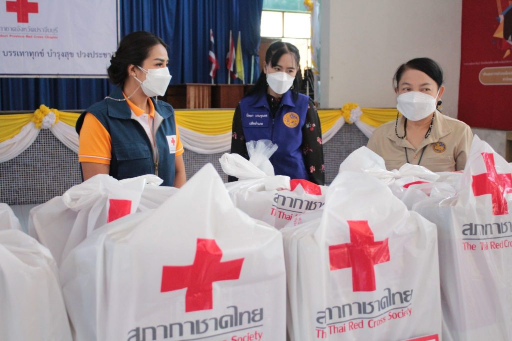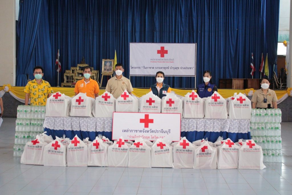 วันที่ 24 กุมภาพันธ์ 2565 นางมัทนา สุวัณณุสส์ นายกเหล่ากาชาดจังหวัดปราจีนบุรี มอบหมายให้นางรมิดา เรียงเงิน รามัญ รองนายกเหล่ากาชาดจังหวัดปราจีนบุรี พร้อมด้วยปลัดอำเภอเมืองปราจีนบุรี เจ้าหน้าที่เหล่ากาชาดจังหวัดปราจีนบุรี มอบชุดธารน้ำใจ กู้ชีวิต ฝ่าวิกฤติ โควิด-19 พร้อมน้ำดื่ม สภากาชาดไทย เพื่อมอบให้แก่ผู้สัมผัสเสี่ยงสูงที่แยกกักสังเกตอาการ การติดเชื้อโรคไวรัสโคโรนา 2019 และผู้ที่ขอความช่วยเหลือผ่านทางแอปพลิเคชั่น “พ้นภัย” จำนวน 246 ชุด ณ หอประชุมอำเภอเมืองปราจีนบุรี จังหวัดปราจีนบุรี