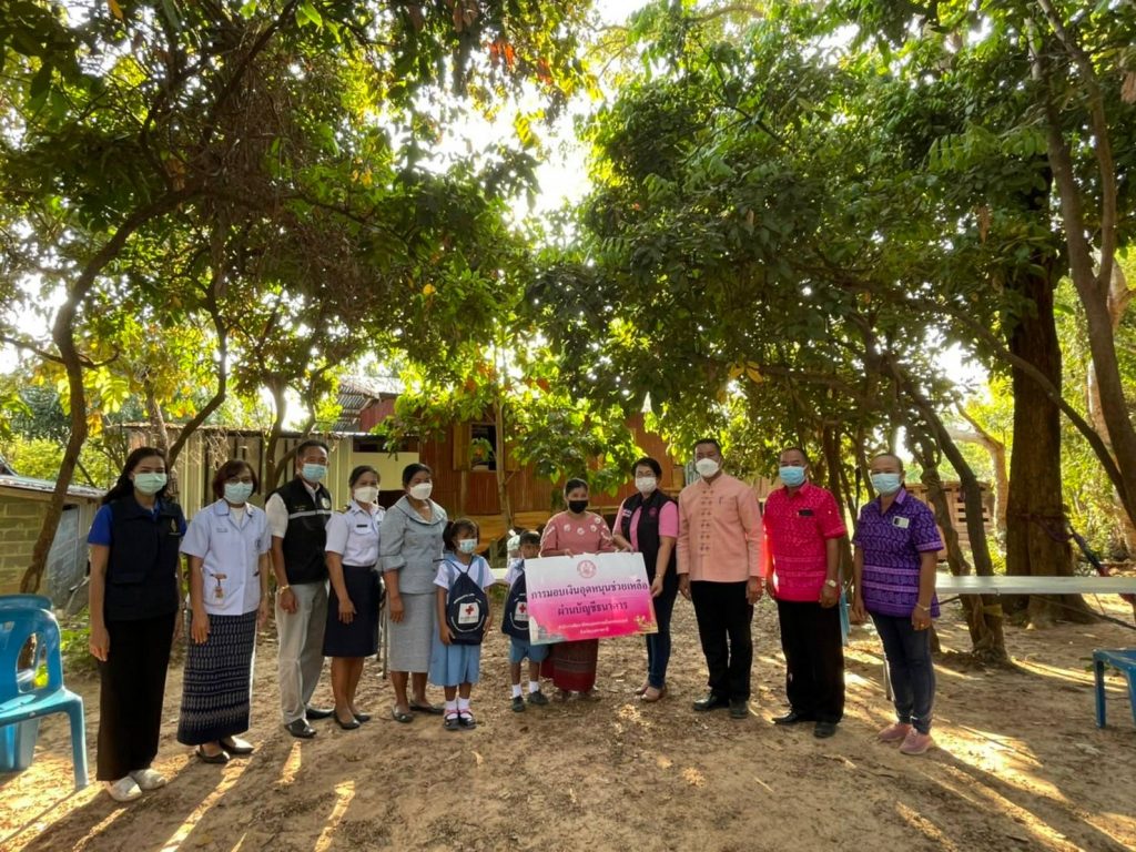 วันที่ 27 มกราคม 2565 นางศลิษา ภิรมย์รัตน์ นายกเหล่ากาชาดจังหวัดอุบลราชธานี ร่วมด้วย นายชินวัตร ทองปรีชา นายอำเภอม่วงสามสิบ ปลัดอำเภอ ผู้แทนพัฒนาสังคมและความมั่นคงของมนุษย์ จังหวัดอุบลราชธานี ผู้อำนวยการโรงเรียนบ้านพิณโท กำนัน ผู้ใหญ่บ้าน อสม. ร่วมเยี่ยมและให้กำลังใจครอบครัว ผู้ยากไร้ ยากจน นักเรียนในโครงการส่งเสริมและสนับสนุนการพัฒนาการพูด อ่าน เขียนภาษาไทย ปีงบประมาณ 2565 จังหวัดอุบลราชธานี กรณี ครอบครัว เด็กชายณัฐภัทร แก้วกาฬ นักเรียนชั้นประถมศึกษาปีที่ 1 เด็กหญิงเมษา ศรีประสิทธิ์ นักเรียนชั้นประถมศึกษาปีที่ 1 บ้านเลขที่ 20 หมู่ที่ 5 ตำบลยางสักกระโพหลุ่ม อำเภอม่วงสามสิบ จังหวัดอุบลราชธานี ในการนี้ นางศลิษา ภิรมย์รัตน์ นายกเหล่ากาชาดจังหวัดอุบลราชธานี ได้มอบเงินทุนการศึกษาแก่นักเรียนยากไร้ยากจน และมอบเครื่องอุปโภค-บริโภค ทั้งนี้นายกเหล่ากาชาดจังหวัดอุบลราชธานี ได้ให้คำแนะนำและให้กำลังใจในการดำชีวิตต่อไป