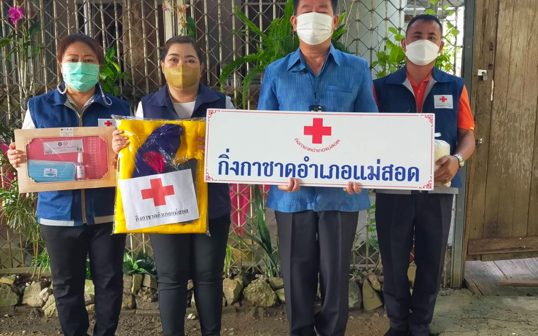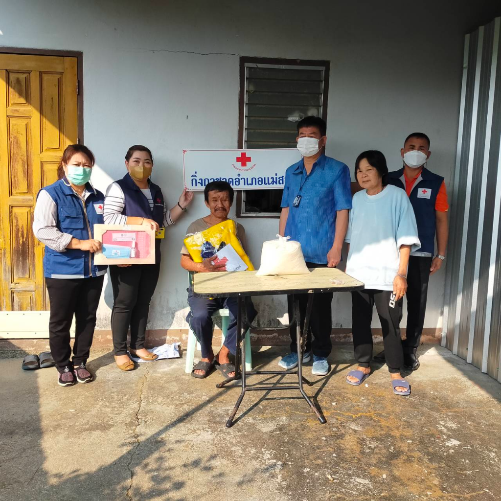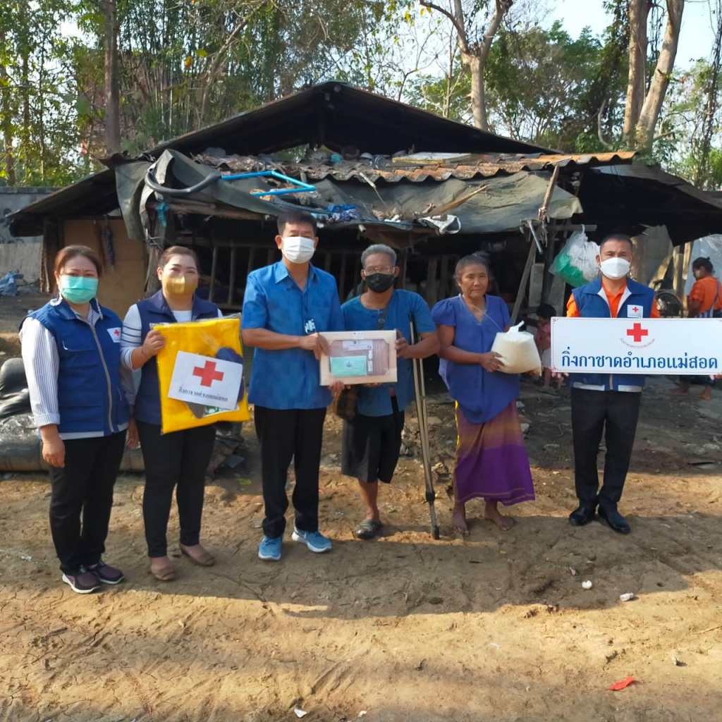 วันที่ 24 กุมภาพันธ์ 2565 นายสมชาย ไตรทิพย์ชาติสกุล นายอำเภอแม่สอด นายกกิ่งกาชาดอำเภอแม่สอด พร้อมด้วยสมาชิกกิ่งกาชาดอำเภอแม่สอด ลงพื้นที่เยี่ยมให้กำลังใจ สอบถามปัญหาและให้คำแนะนำในการดูแลสุขภาพการใช้ชีวิตประจำวัน แก่ผู้พิการ เนื่องในวันคนพิการสากลจังหวัดตาก ประจำปี 2564 พร้อมมอบผ้าห่ม ข้าวสาร และของที่ระลึกงานวันคนพิการสากลจังหวัดตาก ที่ได้รับการสนับสนุนจาก สำนักงานพัฒนาสังคมและความมั่นคงของมนุษย์ เหล่ากาชาดจังหวัดตาก และสถานีกาชาดเทพรัตน์ (สถานีกาชาดที่ ๑๓ จังหวัดตาก) จำนวน 2 ราย ได้แก่