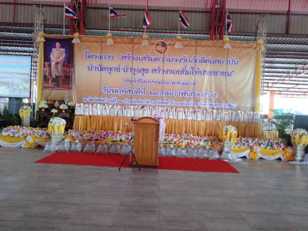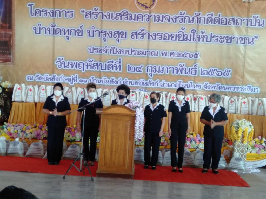 วันที่ 24 กุมภาพันธ์ 2565 นางณัฏฐินีภรณ์ จันทรโณทัย นายกเหล่ากาชาดจังหวัดนครราชสีมา มอบหมายให้คณะกรรมการและสมาชิกเหล่ากาชาดจังหวัดนครราชสีมา ร่วมโครงการ “สร้างเสริมความจงภักดีดีต่อสถาบัน บำบัดทุกข์ บำรุงสุข สร้างรอยยิ้ม ให้ประชาชน” (จังหวัดเคลื่อนที่) ณ วัดบัลลังก์ อำเภอโนนไทย จังหวัดนครราชสีมาโดยมีนาย นายภูมิสิทธิ์ วังคีรี รองผู้ว่าราชการจังหวัดนครราชสีมา เป็นประธานในพิธีขอบคุณเข้าใจแล้วยืนยัน คำแนะนำข้างต้นมีประโยชน์หรือไม่