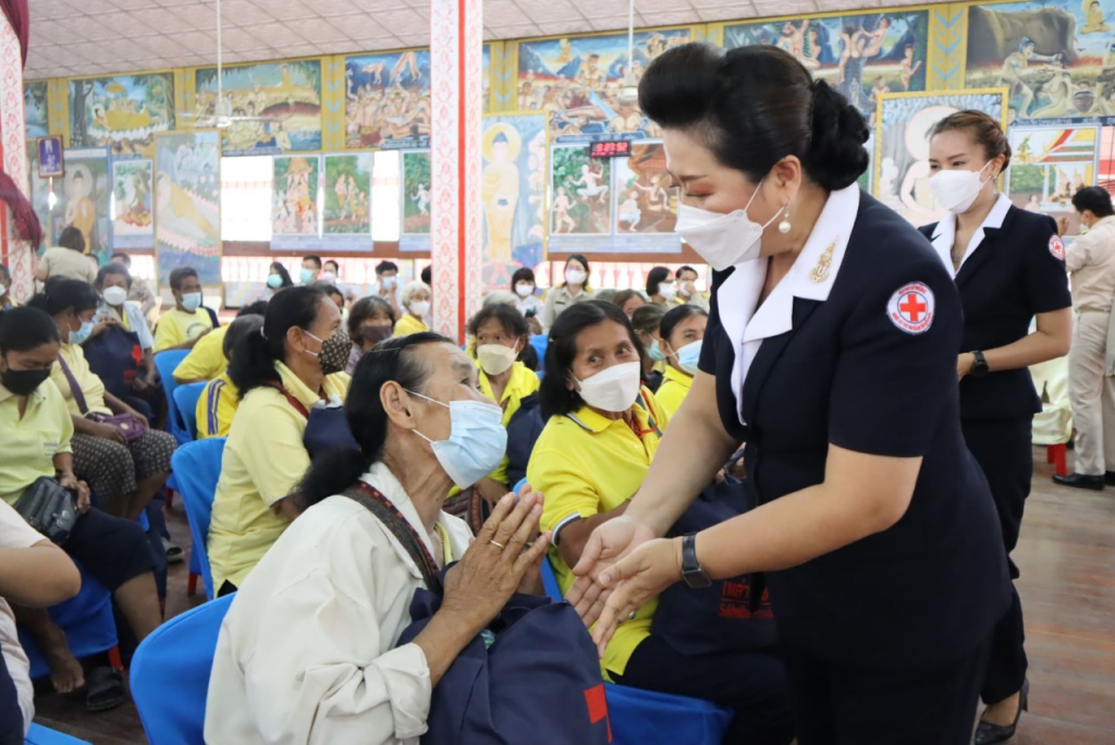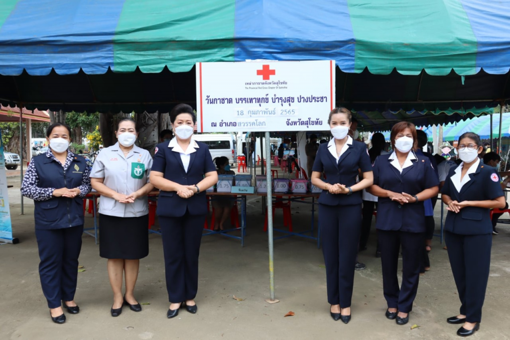 วันที่ 18 กุมภาพันธ์ 2565 นางกนกพร พรรณเทวี นายกเหล่ากาชาดจังหวัดสุโขทัย พร้อมด้วยรองผู้ว่าราชการจังหวัดสุโขทัย กรรมการเหล่ากาชาดจังหวัดสุโขทัย กรรมการกิ่งกาชาดอำเภอสวรรคโลก หัวหน้าส่วนราชการ ข้าราชการและประชาชน ร่วมโครงการหน่วยบำบัดทุกข์ บำรุงสุข สร้างรอยยิ้มให้ประชาชน โดยเหล่ากาชาดจังหวัดสุโขทัย มอบถุงธารน้ำใจให้ผู้ยากไร้ จำนวน 100 ถุง ณ วัดปากน้ำ อำเภอสวรรคโลก จังหวัดสุโขทัย โดยมีนายวิรุฬ พรรณเทวี ผู้ว่าราชการจังหวัดสุโขทัย เป็นประธานในพิธี เหล่ากาชาดจังหวัดสุโขทัยได้จัดทำโครงการมอบแว่นตาให้กับประชาชนที่มาร่วมงานและออกเยี่ยมผู้ตกเกณฑ์ จปฐ. จำนวน 2 ราย คือนางชะลอ จันทร์โทและนางสางผง รู้ธรรม เหล่ากาชาดจังหวัดสุโขทัย ได้มอบเงินจำนวน 1,000 บาท ถุงธารน้ำใจ และผ้าห่ม