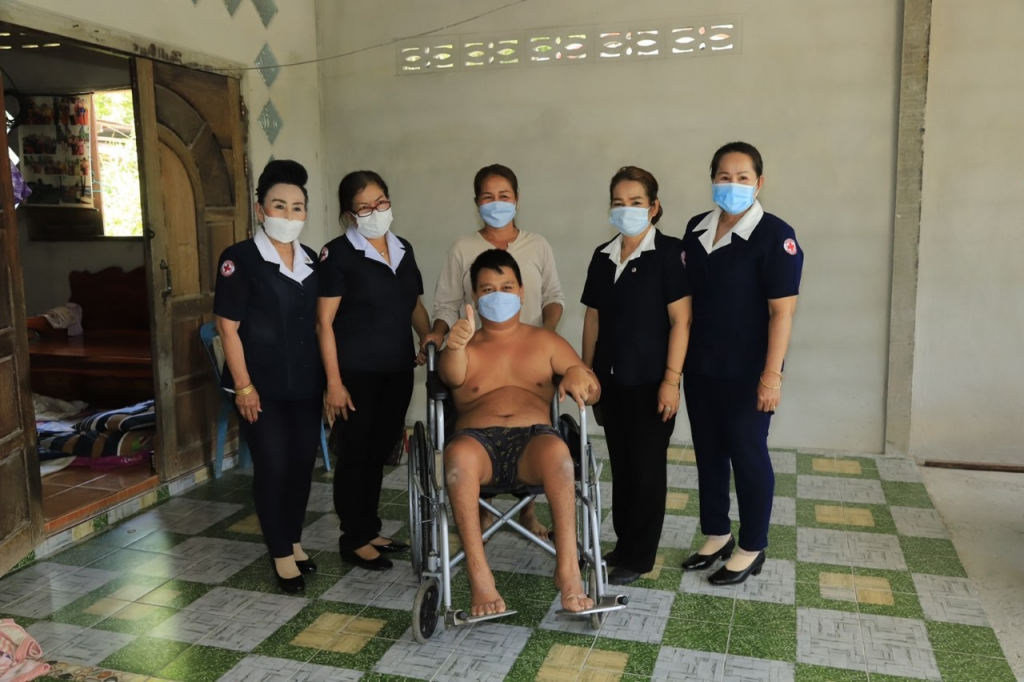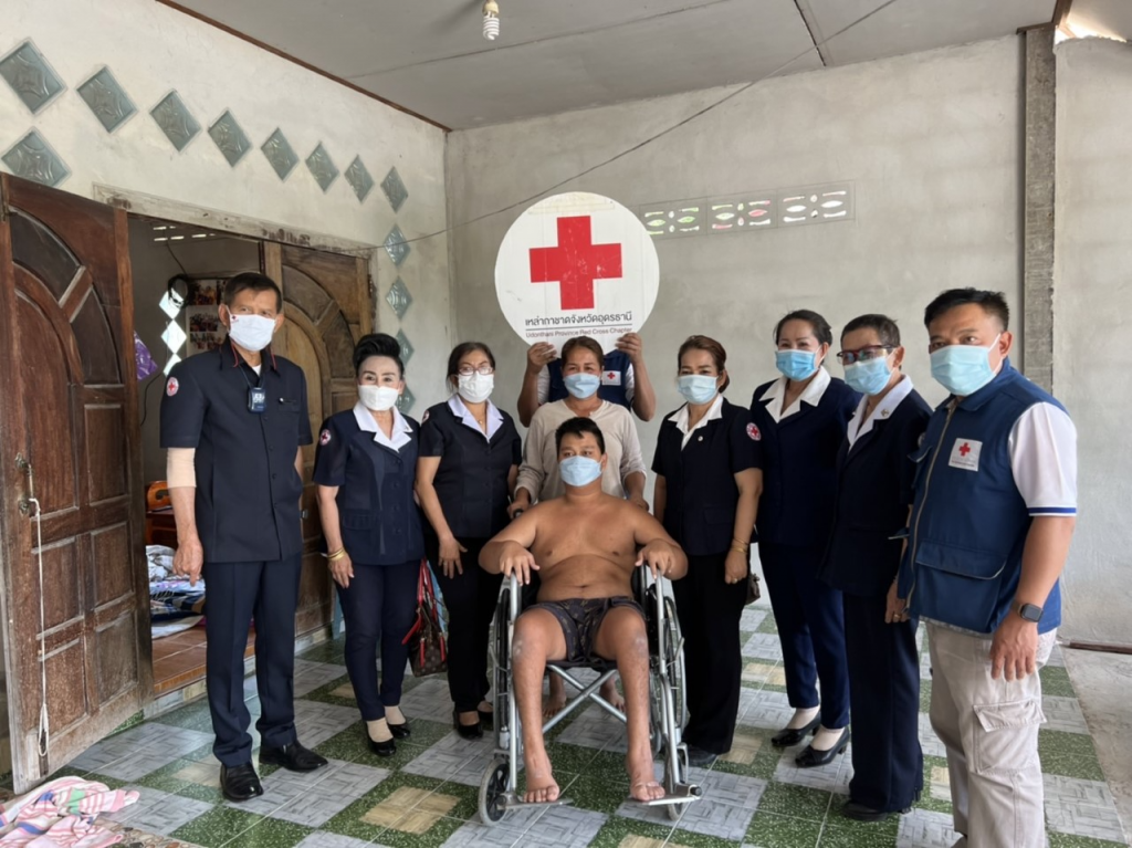 วันที่ 23 กุมภาพันธ์ 2565 นางอรจิรา ศิริมงคล นายกเหล่ากาชาดจังหวัดอุดรธานี มอบหมายให้คณะกรรมการ สมาชิกและเจ้าหน้าที่เหล่ากาชาดจังหวัดอุดรธานี ลงพื้นที่เยี่ยมติดตามเพื่อให้ความช่วยเหลือผู้พิการทางการเคลื่อนไหว จำนวน 1 ราย ซึ่งเหล่ากาชาดจังหวัดอุดรธานี มอบรถเข็นวีลแชร์ จำนวน 1 คัน และชุดเครื่องอุปโภคบริโภค ณ บ้านเลขที่ 151 หมู่ที่ 5 ตำบลโสมเยี่ยม อำเภอน้ำโสม จังหวัดอุดรธานี
