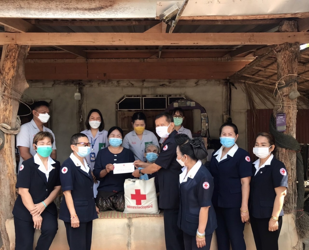 วันที่ 23 กุมภาพันธ์ 2565 นางอรจิรา ศิริมงคล นายกเหล่ากาชาดจังหวัดอุดรธานี มอบหมายให้นายนพดล มามาก เลขานุการเหล่ากาชาดจังหวัดอุดรธานี พร้อมด้วย คณะกรรมการ สมาชิกและเจ้าหน้าที่เหล่ากาชาดจังหวัดอุดรธานี ลงพื้นที่เยี่ยมติดตามเพื่อให้ความช่วยเหลือผู้ป่วยในพระราชานุเคราะห์ฯ ตามโครงการ “เยี่ยมยามถามไถ่” ในพื้นที่อำเภอนายูง รวมจำนวน 8 ราย ในการนี้ นายทวี ชิณรงค์ นายอำเภอนายูง พร้อมด้วย นางพริ้มเพรา ชิณรงค์ ภริยานายอำเภอนายูง สาธารณสุขอำเภอ อาสาสมัครสาธารณสุขประจำหมู่บ้าน และหน่วยงานที่เกี่ยวข้องร่วมเยี่ยมเป็นกำลังใจและให้ข้อมูล โดยมี ผู้แทนสาธารณสุขจังหวัดอุดรธานี ผู้แทนพัฒนาสังคมและความมั่นคงของมนุษย์จังหวัดอุดรธานี ร่วมเยี่ยมไข้และติดตามอาการ เพื่อรายงานส่วนเกี่ยวข้องต่อไป ซึ่งเหล่ากาชาดจังหวัดอุดรธานี ได้มอบเงินสงเคราะห์รายละ 1,000 บาท พร้อมชุดเครื่องอุปโภคบริโภค พัฒนาสังคมและความมั่นคงของมนุษย์จังหวัดอุดรธานี มอบเงินสงเคราะห์รายละ 2,000 บาท – ณ ตำบลบ้านก้อง ตำบลนายูง ตำบลโนนทอง และตำบลนาแค อำเภอนายูง จังหวัดอุดรธานี
