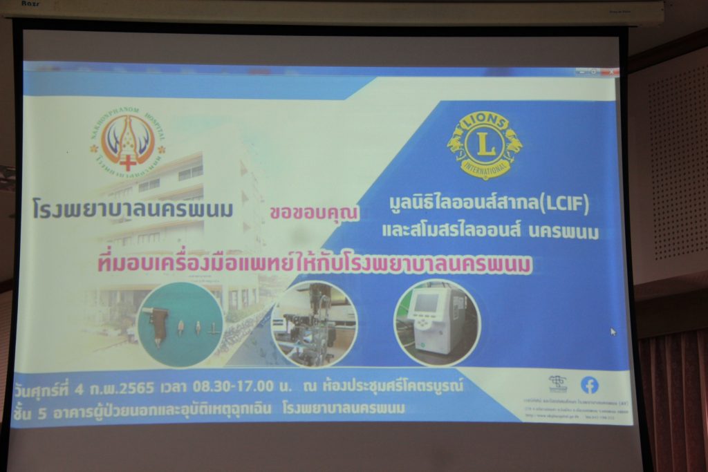 วันที่ 4 กุมภาพันธ์ 2565 นางกาญจนี รุจนเสรี นายกเหล่ากาชาดจังหวัดนครพนม มอบหมายให้ นางวิจิตร ต่อพล รองนายกเหล่ากาชาดจังหวัดนครพนม ร่วมเป็นเกียรติในพิธีมอบเครื่องมือทางการแพทย์มูลค่า 2,763,000 บาท ของมูลนิธิไลออนส์สากล (LCIF) ร่วมกับสโมสรไลออนส์นครพนม มอบให้แก่โรงพยาบาลนครพนม เพื่อใช้ประโยชน์ทางการแพทย์ในการตรวจรักษาและวินิจฉัยโรค
