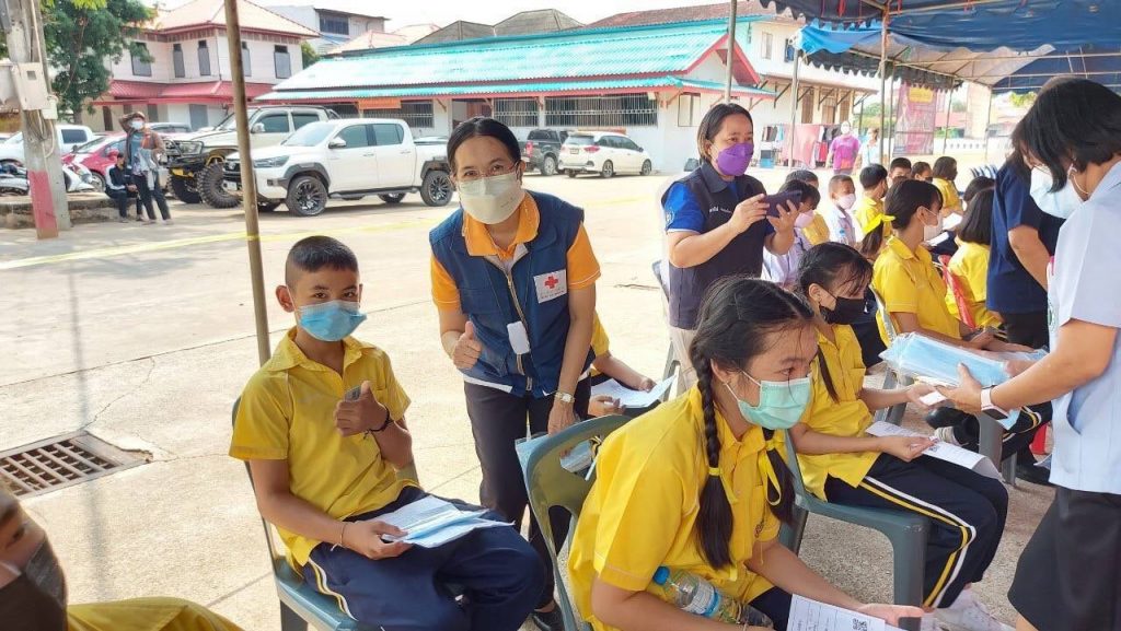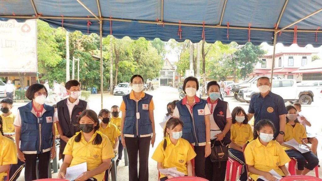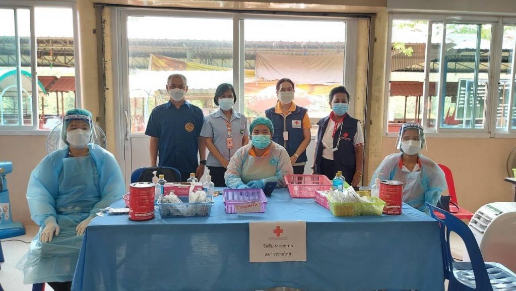 วันที่ 3 มีนาคม 2565 นางมัทนา สุวัณณุสส์ นายกเหล่ากาชาดจังหวัดปราจีนบุรี พร้อมด้วยคณะกรรมการและสมาชิกเหล่ากาชาดจังหวัดปราจีนบุรี ลงพื้นที่ตรวจเยี่ยมการให้บริการฉีดวัคซีนเพื่อป้องกันโรคติดเชื้อไวรัสโคโรนา 2019 (COVID-19) สำหรับประชาชนทั่วไป และเด็กนักเรียนอายุ 12 – 18 ปี และตรวจเยี่ยมการให้บริการฉีดวัคซีน Moderna โดยสภากาชาดไทย ซึ่งเป็นการฉีดให้กับกลุ่มเป้าหมาย ได้แก่