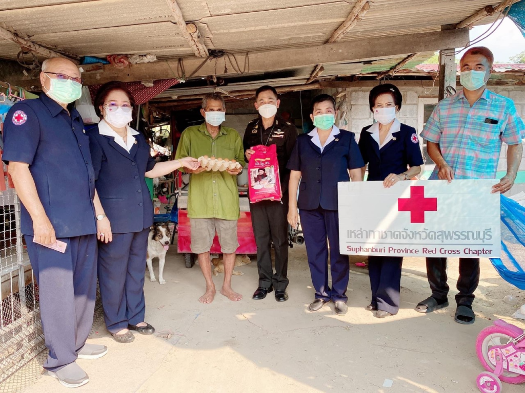 วันที่ 9 มีนาคม 2565 นางนภัสสร สุวรรณประทีป นายกเหล่ากาชาดจังหวัดสุพรรณบุรี พร้อมด้วยกรรมการเหล่ากาชาดจังหวัด พ.ต.เทิดศักดิ์ เกี้ยวเพ็ง หัวหน้ากลุ่มงานมวลชน กอ.รมน.จ.สุพรรณบุรี ลงพื้นที่เยี่ยมให้กำลังใจผู้ยากไร้ ราย นายทักษิณ ทองแท้ โดย คุณชำนาญ คุณวิไล อัครไพศาลกุล มอบข้าวสาร 5 กิโลกรัม จำนวน 1 ถุง ไข่ไก่สด จำนวน 1 แผง เงินสด จำนวน 500 บาท ณ บ้านเลขที่ 104/1 ม.7 ต.ดอนกำยาน อ.เมืองสุพรรณบุรี จ.สุพรรณบุรี