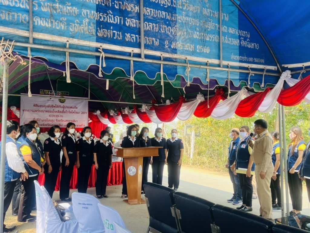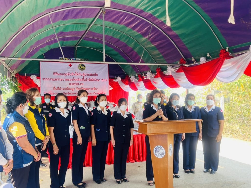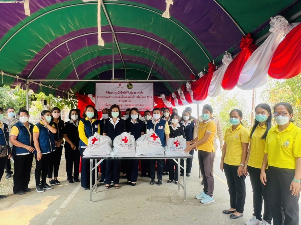 วันที่ 7 มีนาคม 2565 นางณัฏฐินีภรณ์ จันทรโณทัย นายกเหล่ากาชาดจังหวัดนครราชสีมา พร้อมด้วย รองนายกเหล่ากาชาดจังหวัดนครราชสีมา คณะกรรมการและสมาชิกเหล่ากาชาดจังหวัดนครราชสีมา ลงพื้นที่มอบถุงยังชีพให้กับผู้กักตัว covid-19 ในเขตพื้นที่ อ.โนนสูง จำนวน 119 ชุด ณ จุดตรวจทางเข้าบ้านขนายดี หมู่ที่ 10 ต.บิง อ.โนนสูง จ.นครราชสีมา