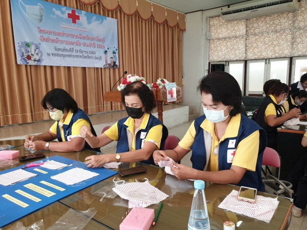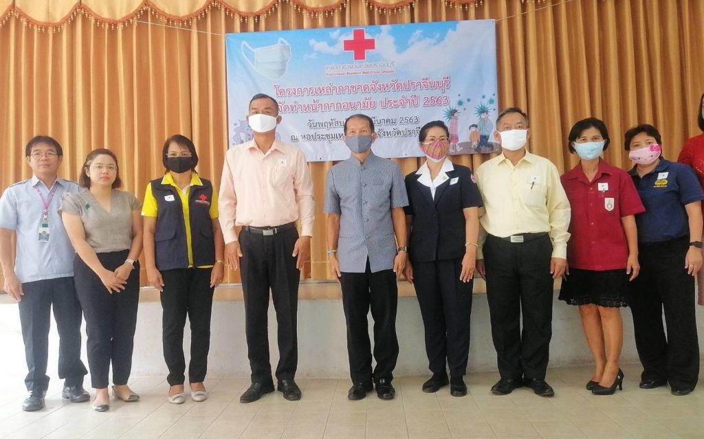 วันที่ 19 มีนาคม 2563 หอประชุมเหล่ากาชาดจังหวัดปราจีนบุรีนางอังคณา หัตถกิจโกศล นายกเหล่ากาชาดจังหวัดปราจีนบุรี นายรณรงค์ นครจินดา รองผู้ว่าราชการจังหวัดปราจีนบุรี /รองนายกเหล่ากาชาดจังหวัดปราจีนบุรี กรรมการ/สมาชิกเหล่ากาชาด นักเรียน นักศึกษา และประชาชนจิตอาสา เข้าร่วมโครงการจัดทำหน้ากากอนามัย ประจำปี 2563 เพื่อให้ความรู้เกี่ยวกับการป้องกันโรคติดเชื้อโคโรนา 2019 (COVID-19) และจัดทำหน้ากากอนามัยเพื่อมอบให้ผู้ยากไร้และด้อยโอกาสในพื้นที่จังหวัดปราจีนบุรี ในวันนี้เหล่ากาชาดจังหวัดปราจีนบุรีได้มอบหน้ากากอนามัยให้แก่ผู้เข้าร่วมอบรม จำนวน 60 ชิ้น และมีจิตอาสารับผ้าไปตัดเย็บเป็นหน้ากากอนามัย จำนวน 500 ชิ้น