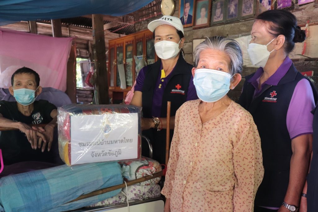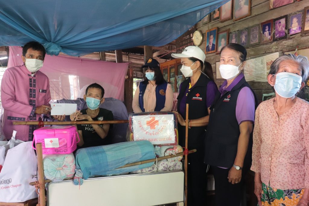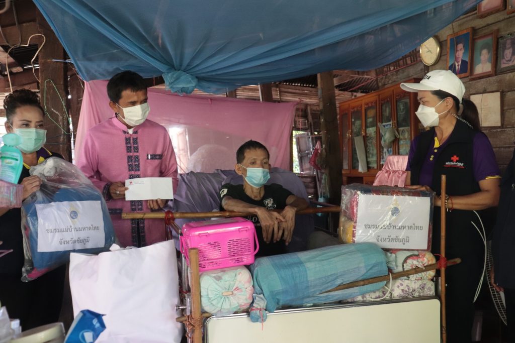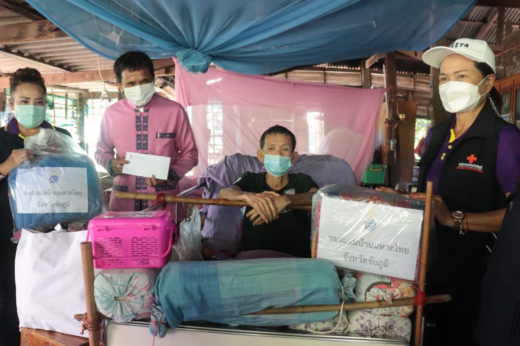 วันที่ 6 มกราคม 2565 นางกรรณิกา กองฉลาด นายกเหล่ากาชาดจังหวัดชัยภูมิ มอบหมายให้คณะกรรมการเหล่ากาชาดจังหวัดชัยภูมิ สมาชิกสภากาชาดไทยอำเภอหนองบัวระเหว ร่วมกับอำเภอหนองบัวระเหว ออกเยี่ยมราษฎร ในพื้นที่อำเภอหนองบัวระเหว รายนางทองจันทร์ รุจาคัม อายุ 74 ปี อาศัยอยู่กับลูกชายที่พิการติดเตียงเพียงสองคน สามีเสียชีวิตแล้ว ส่วนลูกๆคนอื่นแยกย้ายไปมีครอบครัว เนื่องจากลูกชายประสบอุบัติเหตุเมื่อประมาณ 5 ปีที่แล้ว ทำให้ขาพิการทั้งสองข้าง