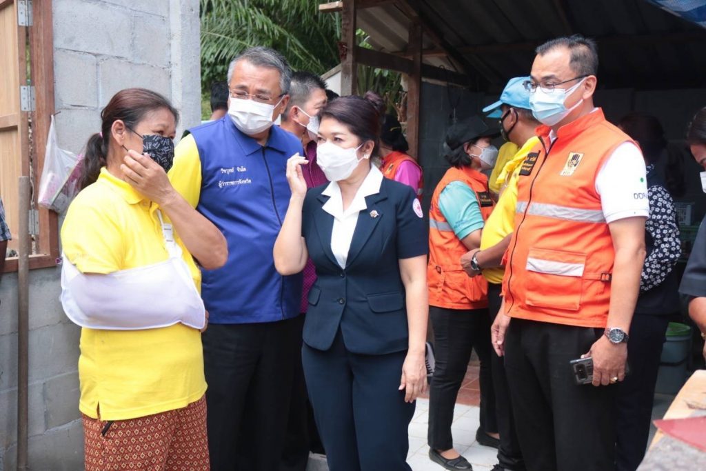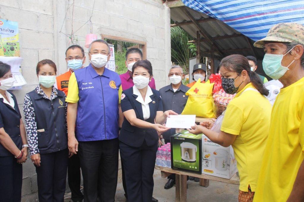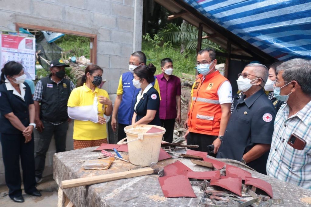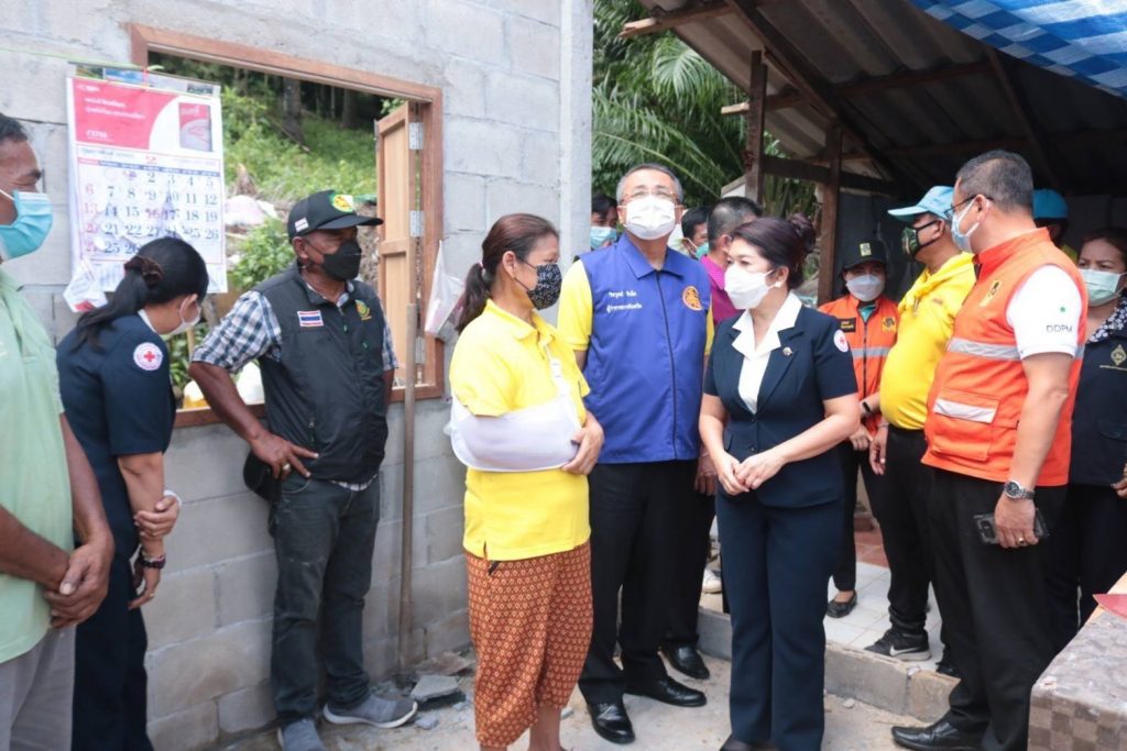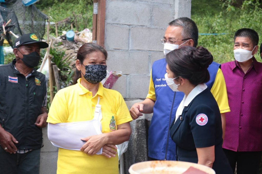 วันที่ 9 มีนาคม 2565 นายวิชวุทย์ จินโต ผู้ว่าราชการจังหวัดสุราษฎร์ธานี พร้อมด้วยนางอุรสา จินโต นายกเหล่ากาชาดจังหวัดสุราษฎร์ธานี/ประธานแม่บ้านมหาดไทยจังหวัดสุราษฎร์ธานีนายจำนง สวัสดิ์วงศ์ หัวหน้าสำนักงาน ปภ.จังหวัดสุราษฎร์ธานีกรรมการฯ สมาชิกเหล่ากาชาดจังหวัดสุราษฎร์ธานีสมาชิกชมรมแม่บ้านมหาดไทยจังหวัดสุราษฎร์ธานีและผู้เกี่ยวข้อง ได้ลงพื้นที่เยี่ยมให้กำลังใจนางขวัญฤดี คะชินฤทธิ์ ราษฎรผู้ประสบเหตุวาตภัยณ บ้านเลขที่ 61 หมู่ที่ 10 ตำบลคลองพาอำเภอท่าชนะ จังหวัดสุราษฎร์ธานี เนื่องจาก เมื่อวันอังคารที่ 8 มีนาคม พ.ศ. 2565 ได้เกิดฝนตกหนักและลมกระโชกแรง เป็นเหตุทำให้ต้นปาล์มล้มทับบ้านพักอาศัยของนางขวัญฤดีฯ ได้รับความเสียหายทั้งหลังและนางขวัญฤดีฯ ได้รับบาดเจ็บที่แขนข้างขวาซึ่ง อบต.คลองพา ได้ให้ความช่วยเหลือในเบื้องต้นหลังเกิดเหตุแล้ว ในการนี้ ผู้ว่าราชการจังหวัดฯ ได้มอบกระเช้าแบรนด์รังนก 1 กระเช้าเหล่ากาชาดจังหวัดสุราษฎร์ธานี ได้มอบเงิน จำนวน 5,000 บาทพร้อมด้วย ถุงยังชีพจำนวน 1 ถุง และน้ำดื่ม จำนวน 1 แพ็คนอกจากนี้ ทางเหล่ากาชาดจังหวัดสุราษฎร์ธานีจะได้สนับสนุนเงิน จำนวน 100,000 บาท เพื่อเป็นค่าวัสดุอุปกรณ์ในการซ่อมแซมบ้านที่ได้รับความเสียหายนี้ด้วย พร้อมกันนี้ สำนักงานป้องกันและบรรเทาสาธารณภัยได้มอบ หม้อหุงข้าว 1 ใบ และกระติกน้ำร้อน 1 ใบเพื่อเป็นการบรรเทาทุกข์ในเบื้องต้น โดยมี นายวิโรจน์ เดชเกลี้ยง นายอำเภอท่าชนะพร้อมด้วย ผกก.สภ.ท่าชนะ ผู้แทนหัวหน้า ปภ.สาขาท่าชนะนายก อบต.คลองพา กำนัน ผู้ใหญ่บ้าน อสม.และประชาชนจิตอาสา ร่วมให้การต้อนรับ
