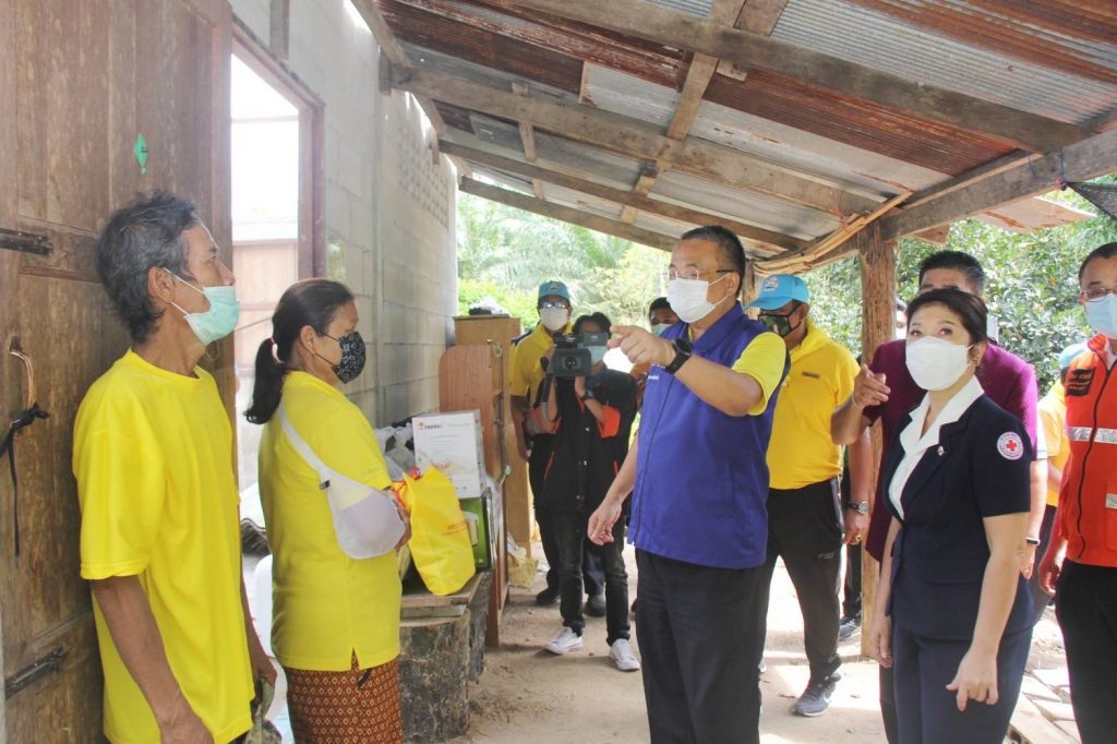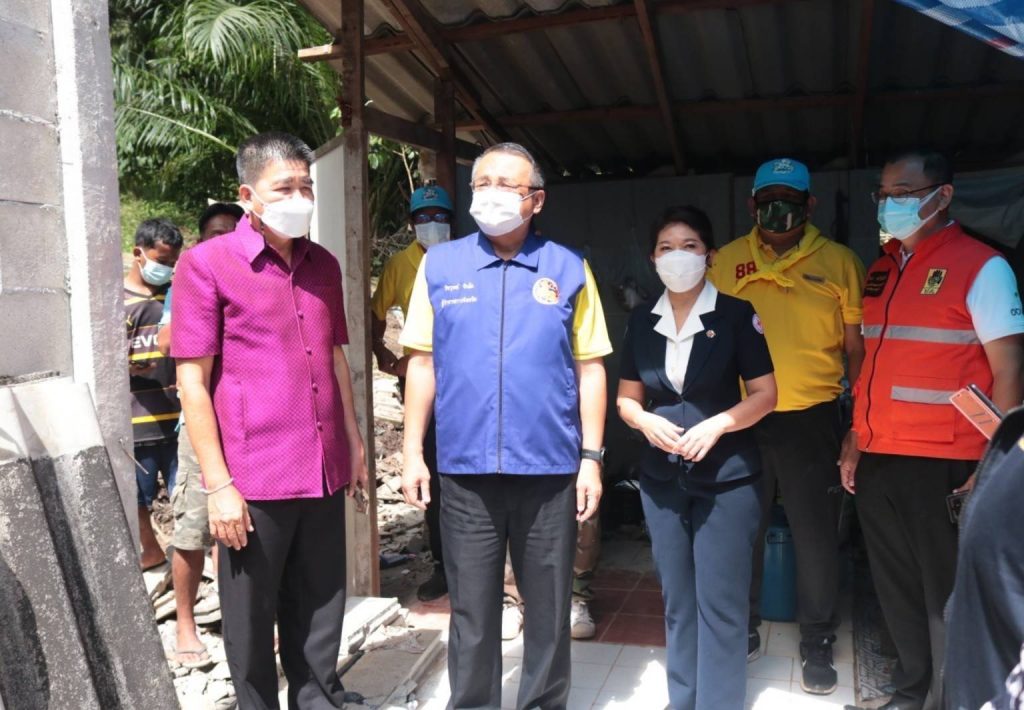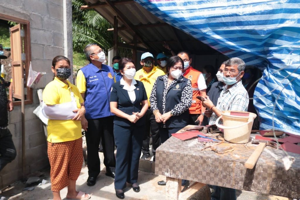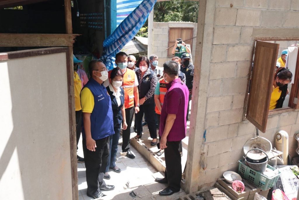 วันที่ 9 มีนาคม 2565 นายวิชวุทย์ จินโต ผู้ว่าราชการจังหวัดสุราษฎร์ธานี พร้อมด้วยนางอุรสา จินโต นายกเหล่ากาชาดจังหวัดสุราษฎร์ธานี/ประธานแม่บ้านมหาดไทยจังหวัดสุราษฎร์ธานีนายจำนง สวัสดิ์วงศ์ หัวหน้าสำนักงาน ปภ.จังหวัดสุราษฎร์ธานีกรรมการฯ สมาชิกเหล่ากาชาดจังหวัดสุราษฎร์ธานีสมาชิกชมรมแม่บ้านมหาดไทยจังหวัดสุราษฎร์ธานีและผู้เกี่ยวข้อง ได้ลงพื้นที่เยี่ยมให้กำลังใจนางขวัญฤดี คะชินฤทธิ์ ราษฎรผู้ประสบเหตุวาตภัยณ บ้านเลขที่ 61 หมู่ที่ 10 ตำบลคลองพาอำเภอท่าชนะ จังหวัดสุราษฎร์ธานี เนื่องจาก เมื่อวันอังคารที่ 8 มีนาคม พ.ศ. 2565 ได้เกิดฝนตกหนักและลมกระโชกแรง เป็นเหตุทำให้ต้นปาล์มล้มทับบ้านพักอาศัยของนางขวัญฤดีฯ ได้รับความเสียหายทั้งหลังและนางขวัญฤดีฯ ได้รับบาดเจ็บที่แขนข้างขวาซึ่ง อบต.คลองพา ได้ให้ความช่วยเหลือในเบื้องต้นหลังเกิดเหตุแล้ว ในการนี้ ผู้ว่าราชการจังหวัดฯ ได้มอบกระเช้าแบรนด์รังนก 1 กระเช้าเหล่ากาชาดจังหวัดสุราษฎร์ธานี ได้มอบเงิน จำนวน 5,000 บาทพร้อมด้วย ถุงยังชีพจำนวน 1 ถุง และน้ำดื่ม จำนวน 1 แพ็คนอกจากนี้ ทางเหล่ากาชาดจังหวัดสุราษฎร์ธานีจะได้สนับสนุนเงิน จำนวน 100,000 บาท เพื่อเป็นค่าวัสดุอุปกรณ์ในการซ่อมแซมบ้านที่ได้รับความเสียหายนี้ด้วย พร้อมกันนี้ สำนักงานป้องกันและบรรเทาสาธารณภัยได้มอบ หม้อหุงข้าว 1 ใบ และกระติกน้ำร้อน 1 ใบเพื่อเป็นการบรรเทาทุกข์ในเบื้องต้น โดยมี นายวิโรจน์ เดชเกลี้ยง นายอำเภอท่าชนะพร้อมด้วย ผกก.สภ.ท่าชนะ ผู้แทนหัวหน้า ปภ.สาขาท่าชนะนายก อบต.คลองพา กำนัน ผู้ใหญ่บ้าน อสม.และประชาชนจิตอาสา ร่วมให้การต้อนรับ