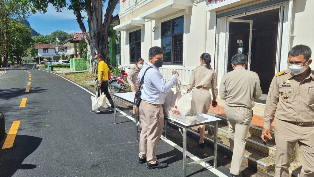 วันที่ 28 กุมภาพันธ์ 2565 ณ สำนักงานเหล่ากาชาดจังหวัดพังงา นางวิภาดา ทิพญพงศ์ธาดา นายกเหล่ากาชาดจังหวัดพังงา เป็นประธานมอบถุงยังชีพ แก่ครัวเรือนเป้าหมาย ทุกอำเภอเป็น จำนวน 80 ถุงในกิจกรรม KICK OFF คาราวานแก้จนจังหวัดพังงา โครงการพังงาร่วมใจ รวมพลัง พัฒนาคุณภาพชีวิต พิชิตปัญหา ขจัดความยากจน ภายใต้การขับเคลื่อนการขจัดความยากจนและพัฒนาคนทุกช่วงวัยอย่างยั่งยืน ตามหลักปรัชญาของเศรษฐกิจพอเพียง ซึ่งกำหนดจัดขึ้นในวันที่ 1 มีนาคม 2565 พร้อมกันทั้งจังหวัด โดยมี นางสาวศริญญา ใจเย็น ผู้อำนวยการกลุ่มงานยุทธศาสตร์การพัฒนาชุมชน รักษาราชการแทนพัฒนาการจังหวัดพังงา พร้อมด้วย พัฒนาการอำเภอและเจ้าหน้าที่พัฒนาชุมชน เป็นตัวแทนรับมอบถุงยังชีพ เพื่อนำไปมอบให้ ครัวเรือนเป้าหมายต่อไป
