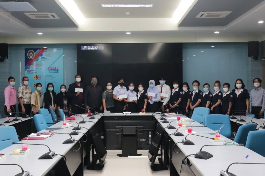 โดยมี ดร.สมปราชญ์ วุฒิจันทร์รองอธิการบดี ฝ่ายบริหารและจัดการทรัพย์สินพร้อมด้วย ดร.พลกฤต แสงอาวุธรองอธิการบดีฝ่ายกิจการนักศึกษา และศิษย์เก่าสัมพันธ์(ดร.พลกฤตฯ เป็นตัวแทนในการรับทุนการศึกษาแทน นางสาวศิวกรฯ ซึ่งไม่สามารถมารับด้วยตัวเองได้)ผู้ช่วยรองอธิการบดีฝ่ายกิจการนักศึกษาและศิษย์เก่าสัมพันธ์หัวหน้างานบริการและสวัสดิการ คณะอาจารย์ที่ปรึกษาและทีมงานกองพัฒนานักศึกษา ให้การต้อนรับ
