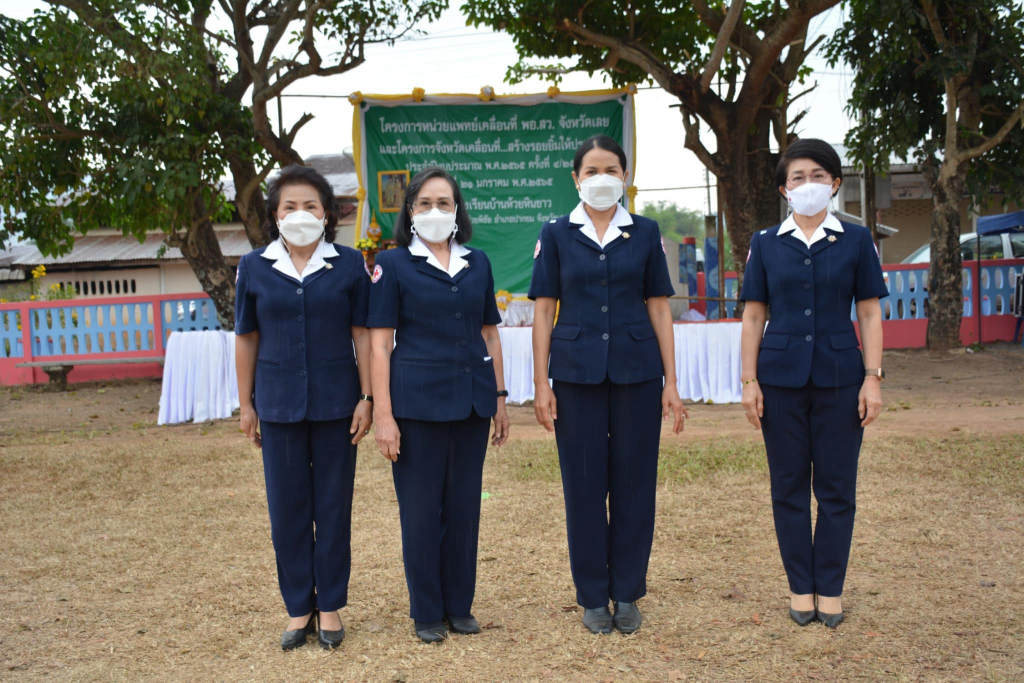 วันที่ 21 มกราคม 2565 นางนงค์นิตย์ เนียมศิริ นายกเหล่ากาชาดจังหวัดเลย มอบหมายให้นางขนิษฐา พินิจพานิชย์ รองนายกเหล่ากาชาดจังหวัดเลย , นายศิริวัฒน์ พินิจพาณิชย์ ปลัดจังหวัดเลย/เลขานุการเหล่ากาชาดจังหวัดเลย , กรรมการเหล่ากาชาดจังหวัดเลย , ที่ปรึกษาเหล่ากาชาดจังหวัดเลย , หัวหน้าส่วนราชการ และผู้แทนจากภาคส่วนต่างๆ ร่วมโครงการหน่วยแพทย์เคลื่อนที่ พอ.สว.จังหวัดเลย และโครงการจังหวัดเคลื่อนที่….สร้างรอยยิ้มให้ประชาชนชาวจังหวัดเลย ประจำปีงบประมาณ 2565 ครั้งที่ 4/2565 ที่โรงเรียนบ้านห้วยหินขาว ตำบลห้วยพิชัย อำเภอปากชม จังหวัดเลย พร้อมนำถุงเครื่องอุปโภค บริโภค จำนวน 50 ชุด เสื้อกันหนาว จำนวน 50 ตัว ไปมอบให้แก่ราษฎรกลุ่มเปราะบางในสังคม ผู้สูงอายุ ผู้ยากไร้ และผู้ด้อยโอกาส ในพื้นที่อำเภอปากชม จังหวัดเลย โดยมีนายดำรงค์ สิริวิชย อิ่มวิเศษ รองผู้ว่าราชการจังหวัดเลย เป็นประธาน