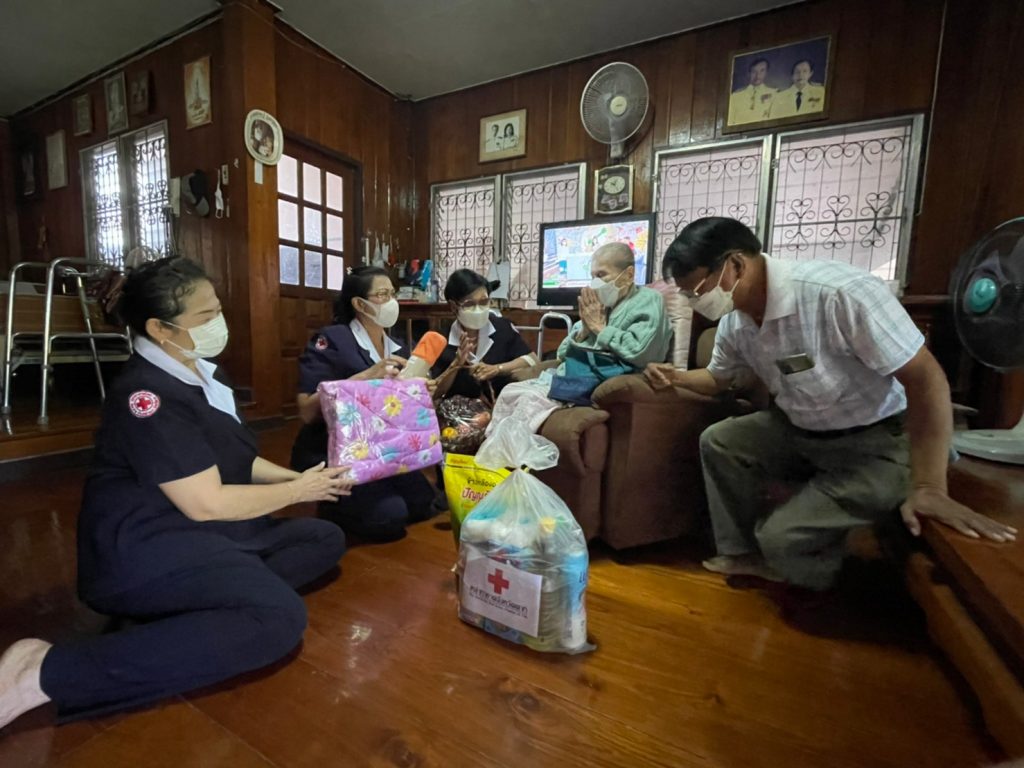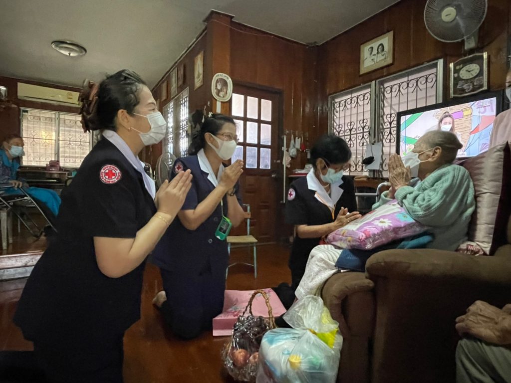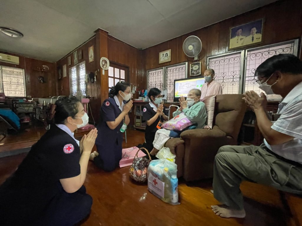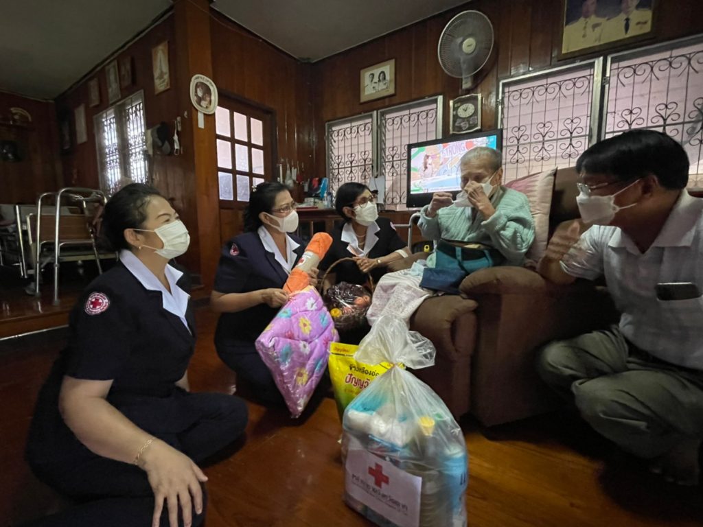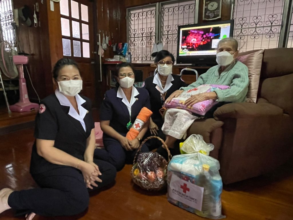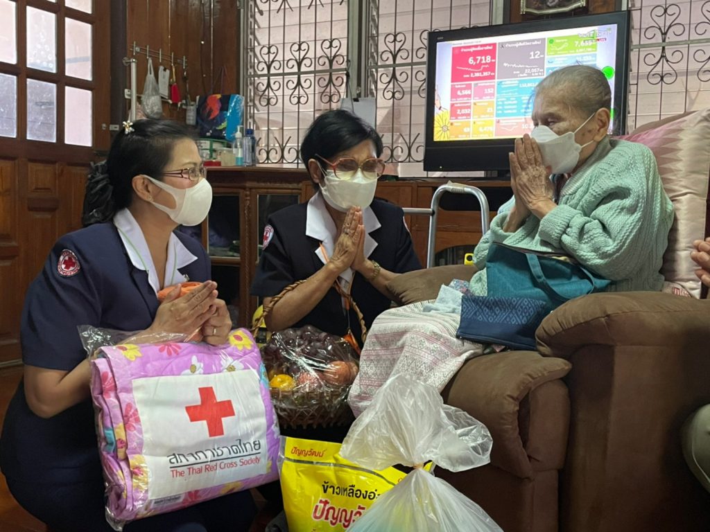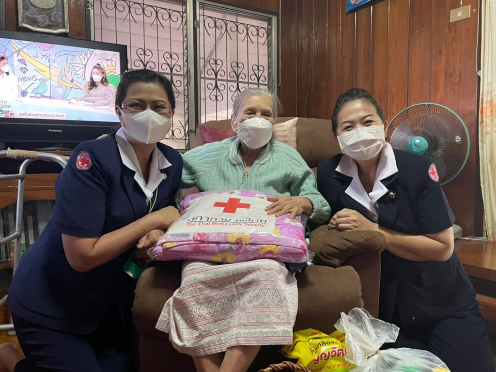 วันที่ 25 มกราคม 2565 ที่บ้านจัดสรร อำเภอสามเงา จังหวัดตาก นางวรรณฤดี กิจเจริญรุ่งโรจน์ นายกเหล่ากาชาดจังหวัดตาก พร้อมด้วยนางเพชรศร ไชยมณี นายกกิ่งกาชาดอำเภอสามเงา และกรรมการเหล่ากาชาดจังหวัดตาก ลงพื้นที่เยี่ยมผู้สูงอายุ 100 ปี ราย นางลำดวน ชัยวัฒนา อายุ 100 ปี 4 เดือน ในการนี้ ได้นำถุงยังชีพเครื่องอุปโภคบริโภค ผ้าห่มกันหนาว ผ้าขนหนู และกระเช้าผลไม้ มอบให้แก่ผู้สูงอายุ พร้อมทั้งได้พบปะพูดคุยให้กำลังใจแก่ผู้สูงอายุ ด้วย