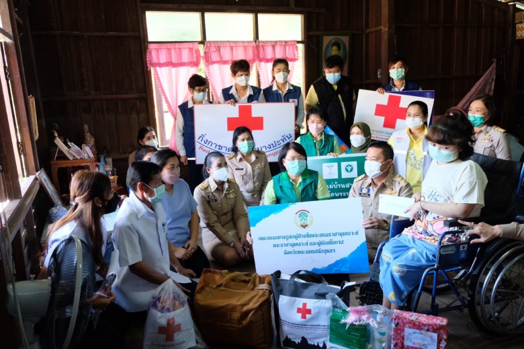 วันจันทร์ ที่ 24 มกราคม 2565 นายวีระชัย นาคมาศ ผู้ว่าราชการจังหวัดพระนครศรีอยุธยา นายกเหล่ากาชาดจังหวัดพระนครศรีอยุธยา/ประธานแม่บ้านมหาดไทยจังหวัดพระนครศรีอยุธยา นายกเหล่ากาชาด ลงพื้นที่ร่วมกับสำนักงานสาธารณสุขจังหวัดพระนครศรีอยุธยา ประชาสัมพันธ์จังหวัดพระนครศรีอยุธยา หัวหน้ากลุ่มงาน สสจ. สำนักงานจังหวัดพระนครศรีอยุธยา และสำนักงานพัฒนาสังคมและความมั่นคงของมนุษย์จังหวัดพระนครศรีอยุธยา เยี่ยมผู้ป่วยในพระบรมราชานุเคราะห์ พระราชานุเคราะห์ และผู้ด้อยโอกาสในสังคม จำนวน 5 ราย ในพื้นที่อำเภอบางปะหันและ อำเภอนครหลวง โดยเหล่ากาชาดจังหวัดฯ มอบถุงยังชีพและเงินช่วยเหลือ เพื่อเป็นการบรรเทาความเดือดร้อนในเบื้องต้น