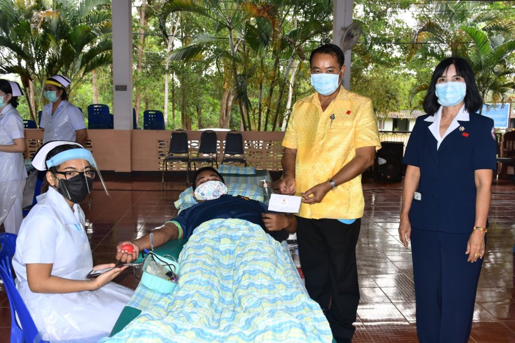 อำเภอศรีนครินทร์ จังหวัดพัทลุง มีผู้มีจิตศรัทธาร่วมบริจาคโลหิต ได้รับโลหิต จำนวน 53 ยูนิต พร้อมมอบหน้ากากอนามัยแก่ผู้เข้าร่วม
