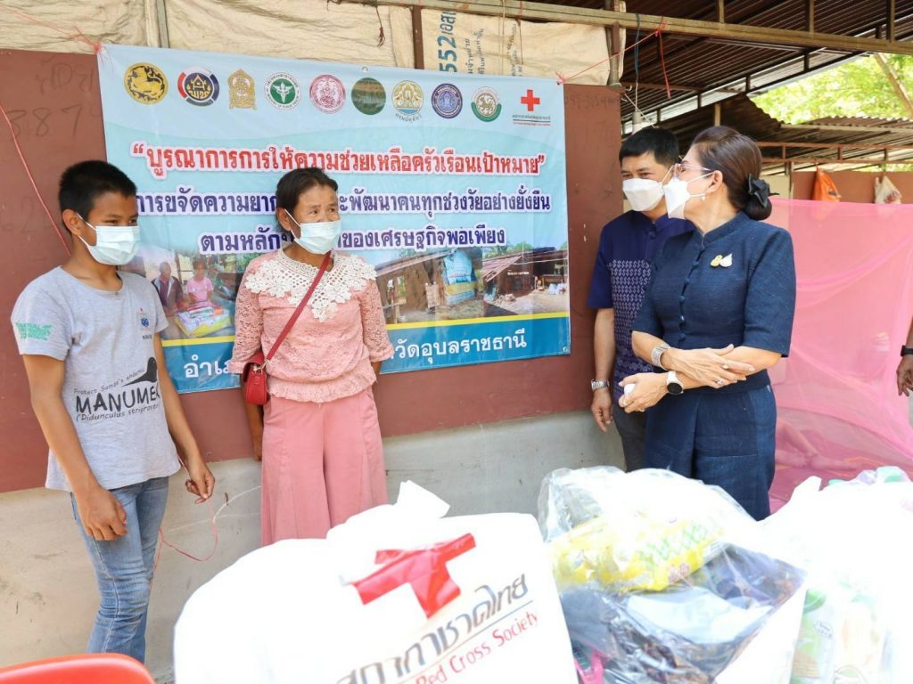 วันที่ 4 มีนาคม 2565 นางศลิษา ภิรมย์รัตน์ นายกเหล่ากาชาดจังหวัดอุบลราชธานี ร่วมกิจกรรม Kick off เยี่ยมครัวเรือนยากจน โดยมี นายทรงพล วิชัยขัทคะ รองผู้ว่าราชการจังหวัดอุบลราชธานี นายพิสดาร ประดา พัฒนาการจังหวัดอุบลราชธานี นายธงชัย ครุฑแสน ผู้อำนวยการกลุ่มงานสารสนเทศการพัฒนาชุมชน นักวิชาการพัฒนาชุมชน และเจ้าหน้าที่จากสำนักงานพัฒนาชุมชนจังหวัดอุบลราชธานี ลงพื้นที่เพื่อบูรณาการความร่วมมือและเยี่ยมให้กำลังใจครัวเรือนเป้าหมายตามโครงการขจัดความยากจนและพัฒนาคนทุกช่วงวัยอย่างยั่งยืน ตามหลักปรัชญาของเศรษฐกิจพอเพียงในพื้นที่อำเภอเมืองอุบลราชธานีและสำหรับกิจกรรม Kick off เยี่ยมครัวเรือนยากจนในวันนี้ ทางจังหวัดอุบลราชธานี ได้เดินทางไปเยี่ยมครัวเรือนยากจนในเขตพื้นที่อำเภอโขงเจียมจำนวน 1 ครอบครัว ได้แก่ ครอบครัวนายสวาท ขนทอง อยู่บ้านเลขที่ 162 หมู่ที่ 7 บ้านบะไห ตำบลห้วยยาง อำเภอโขงเจียม จังหวัดอุบลราชธานี ในเบื้องต้นได้มีการให้ความรู้เรื่องแนวทางการดำเนินชีวิตตามหลักปรัชญาของเศรษฐกิจพอเพียง การสนับสนุนเมล็ดพันธุ์พืชผัก และการบริหารจัดการชีวิต รวมถึงขอรับการสนับสนุนงบประมาณในการซ่อมแซมบ้านและที่อยู่อาศัย ผู้ว่าราชการจังหวัดอุบลราชธานี และ ยังได้มอบถุงยังชีพและสิ่งของอุปโภคบริโภคเพื่อบรรเทาปัญหา พร้อมเงินจำนวน หนึ่งให้กับทั้งสองครอบครัว ตลอดจนกิจกรรมการปลูกผักสวนครัวเพื่อสร้างความมั่นคงทางอาหาร ร่วมกับชุดปฏิบัติการระดับตำบล อีกด้วย