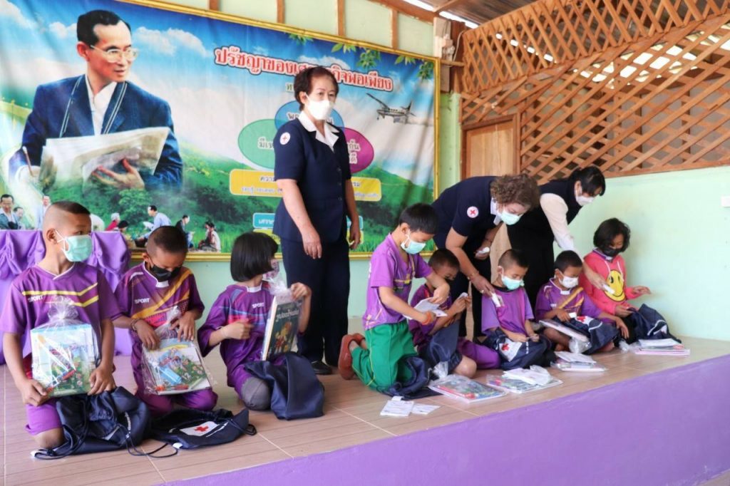 วันที่ 29 ธันวาคม 2564 นางศลิษา ภิรมย์รัตน์ นายกเหล่ากาชาดจังหวัดอุบลราชธานี มอบหมายให้คณะกรรมการและสมาชิกเหล่ากาชาดจังหวัดอุบลราชธานี น.ส.ธรรม์ธนิกา วงษาสาร เจ้าหน้าที่เหล่ากาชาดจังหวัดอุบลราชธานี ร่วมด้วย นายธวัชชัย ตระการกสิกิจ ปลัดอาวุโส รักษาราชการแทนนายอำเภอเขมราฐ ดร.พันธ์ศรี พลศรี ผอ.กลุ่มนิเทศติดตามและประเมินผล นายบุญเกิด ไชยวงศ์ ศึกษานิเทศก์ ศธจ.อบ. นางสาวสุนิภา ไพบูลย์พิมพ์ ศึกษานิเทศก์ ศธจ.อบ. นาย คำภีร์ เจริญราษฎร์ ศึกษานิเทศก์ ศธจ.อบ. ลงพื้นที่ติดตามการดำเนินงานโครงการส่งเสริมและสนับสนุนการพัฒนาการพูด อ่าน เขียนภาษาไทย ประจำปีงบประมาณ 2565 จังหวัดอุบลราชธานี โรงเรียนในโครงการ ณ โรงเรียนตำรวจตระเวนชายแดนเอไอเอประเทศไทย (บ้านบ๋าฮี) ตำบลหนองผือ อำเภอเขมราฐ จังหวัดอุบลราชธานี โดยการติดตามการดำเนินงานโครงการดังกล่าวและ ได้พบปะกับผู้บริหารและคณะครู รวมถึงให้กำลังใจและคำแนะนำในการพัฒนานักเรียนกลุ่มเป้าหมาย สอบถามปัญหาทั่วไป และมอบชุดยังชีพเพื่อการศึกษา ตามโครงการส่งเสริมและสนับสนุนการพัฒนาการพูด อ่าน เขียนภาษาไทย ประจำปีงบประมาณ 2565 จังหวัดอุบลราชธานี ให้กับนักเรียน จำนวน 8 ราย ซึ่งได้รับการสนับสนุนจากสภากาชาดไทยและองค์การค้า สกสค.