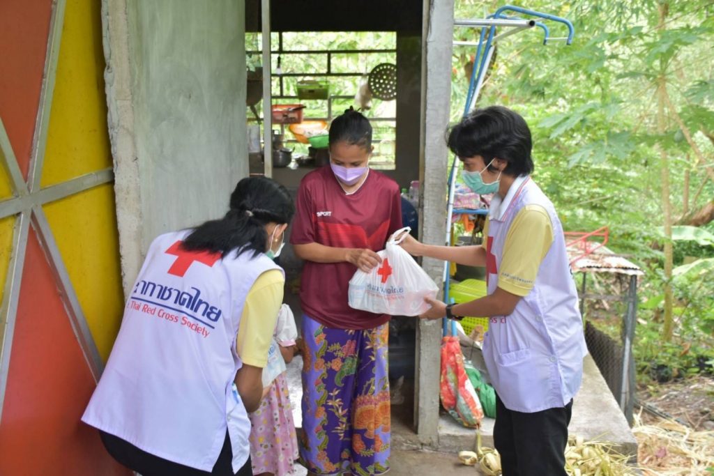 นางวิภาดา ทิพญพงศ์ธาดา นายกเหล่ากาชาดจังหวัดพังงา นำคณะกรรมการเหล่ากาชาดจังหวัดพังงา พร้อมนางสาวเสาวนีย์ เสาวกูล หัวหน้าสถานีกาชาดที่ 14 พังงา เฉลิมเกียรติ ร่วมกันลงพื้นที่บริเวณชุมชนหลังตลาดวังหม้อแกง ต.ถ้ำน้ำผุด อ.เมืองพังงา เพื่อนำสิ่งของอุปโภคบริโภค ชุด Ready Meal อาทิ ข้าวสาร อาหารกระป๋อง เครื่องตรวจวัดค่าออกซิเจนปลายนิ้ว ปรอทวัดไข้ และสิ่งที่จำเป็นอื่นๆ ไปมอบให้กับผู้ป่วยโควิด -19 กลุ่มสีเขียว ที่กำลังอยู่ในระหว่างการกักตัวอยู่ในที่พักอาศัยและช่วยเหลือตัวเองลำบาก โดยมีเจ้าหน้าที่สาธารณสุข อสม. และผู้นำท้องถิ่น ร่วมลงพื้นที่ด้วย พร้อมได้พูดคุยให้คำแนะนำและวิธีการปฏิบัติในขณะที่กำลังอยู่ในระยะเวลาพักรักษาตัว เพื่อเป็นขวัญและกำลังให้กับประชาชนที่ได้รับผลกระทบจากการแพร่ระบาดของโควิด -19 ซึ่งเหล่ากาชาดจังหวัดพังงาได้ให้ความช่วยเหลือประชาชนในยามที่ต้องการความช่วยเหลือและในยามเดือดร้อน ถือเป็นหนึ่งในภารกิจในการบรรเทาทุกข์ บำรุงสุข บำบัดโรค กำจัดภัย เพื่อประโยชน์สุขของประชาชนและเป็นที่พึ่งของประชาชน