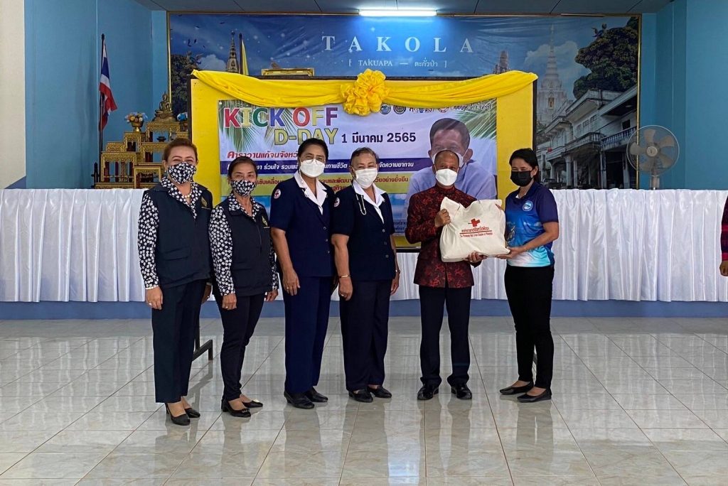 วันที่ 1 มีนาคม 2565 ณ ศาลาประชาคมอำเภอตะกั่วป่า นางวิภาดา ทิพญพงศ์ธาดา นายกเหล่ากาชาดจังหวัดพังงา มอบหมายให้นางกฤษณา แซ่ลิ่ม กรรมการเหล่ากาชาดจังหวัดพังงา และนางอรวรรณ โพธิ์สุทธิ กรรมการเหล่ากาชาดพังงาพังงา เข้าร่วมกิจกรรม (KICK OFF) คาราวานแก้จนจังหวัดพังงา โครงการพังงาร่วมใจ รวมพลัง พัฒนาคุณภาพชีวิต พิชิตปัญหา ขจัดความยากจนภายใต้ การขับเคลื่อนการขจัดความยากจนและพัฒนาคนทุกช่วงวัยอย่างยั่งยืนตามหลักปรัชญาของเศรษฐกิจพอเพียง โดยมีพันจ่าโทอนันต์ บุญสำราญ ปลัดจังหวัดพังงา เป็นประธานกิจกรรมดังกล่าว สำหรับกิจกรรมในวันนี้เหล่ากาชาดจังหวัดพังงา ได้มอบถุงยังชีพธารน้ำใจเหล่ากาชาด จำนวน 8 ถุง /มอบเงินช่วยเหลือจาก สำนักพัฒนาสังคมและความมั่นคงของมนุษย์ มอบเงินอุดหนุนพัฒนาคุณภาพชีวิตครัวเรือนเปาะบางเป็น เงิน จำนวนครัวเรือนละ 2000 บาท แก่ครัวเรือนเป้าหมาย จำนวน 5 ครัวเรือน / มอบคู่มือแก้จนแก่ทีมพี่เลี้ยง /หมอแก้จน และมอบสิ่งของอุปโภค บริโภคช่วยเหลือครัวเรือนยากจน ต่อจากนั้นประธานได้ปล่อยขบวนรถคาราวานแก้จน และได้ร่วมขบวนไปเพื่อออกพบปะเยี่ยมเยียน ให้กำลังใจครัวเรือนเป้าหมายในพื้นที่ พร้อมด้วยส่วนราชการภาคีเครือข่าย และเจ้าหน้าที่พัฒนาชุมชนอำเภอตะกั่วป่า พร้อมเน้นย้ำทีมงานให้การสนับสนุนครัวเรือนเป้าหมายให้มีคุณภาพชีวิตที่ดีขึ้นต่อไป