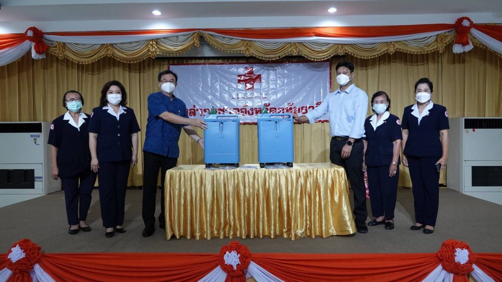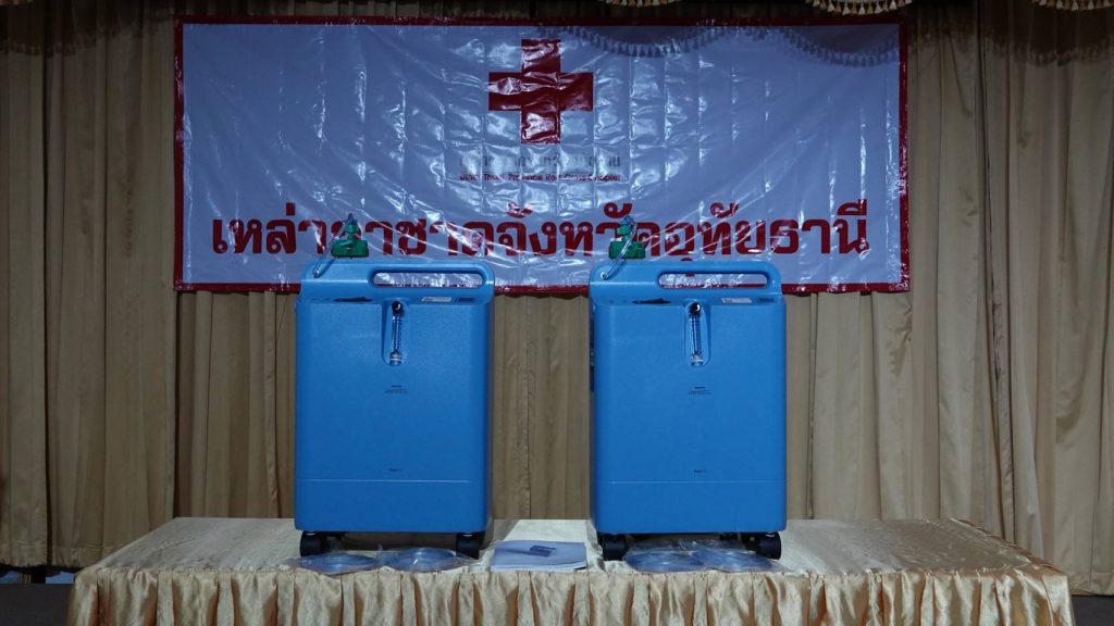 วันที่ 8 มีนาคม 2565 นางปิติมา รักพานิชมณี นายกเหล่ากาชาดจังหวัดอุทัยธานี พร้อมด้วยนายขจรเกียรติ รักพานิชมณี ผู้ว่าราชการจังหวัดอุทัยธานี และสมาชิกเหล่ากาชาดจังหวัดอุทัยธานี รับมอบเครื่องผลิตออกซิเจนทางการแพทย์ จำนวน 2 เครื่อง จากบริษัท เมดิคอลอินเทนซีฟแคร์ จำกัด เพื่อแบ่งเบาภาระให้หน่วยแพทย์ และมอบให้แก่ประชาชนที่มีความต้องการจำเป็นเร่งด่วนต่อไป เนื่องด้วย สถานการณ์การแพร่ระบาดอย่างต่อเนื่องของโรคติดเชื้อไวรัสโคโรนา 2019 (COVID-19) ในพื้นที่จังหวัดอุทัยธานี ทำให้มีผู้ป่วยเข้ารับการรักษาตัวในโรงพยาบาลอุทัยธานี และโรงพยาบาลสนามเพิ่มมากขึ้น