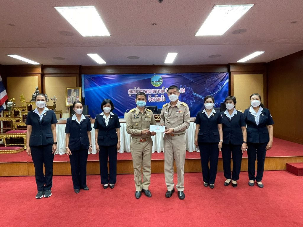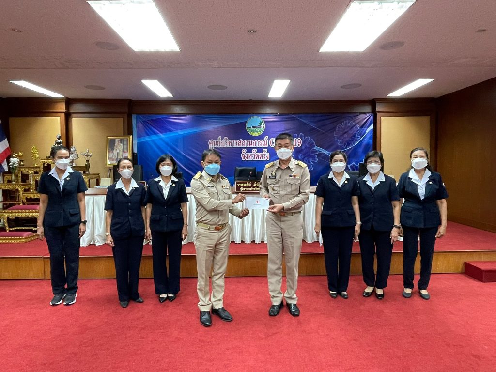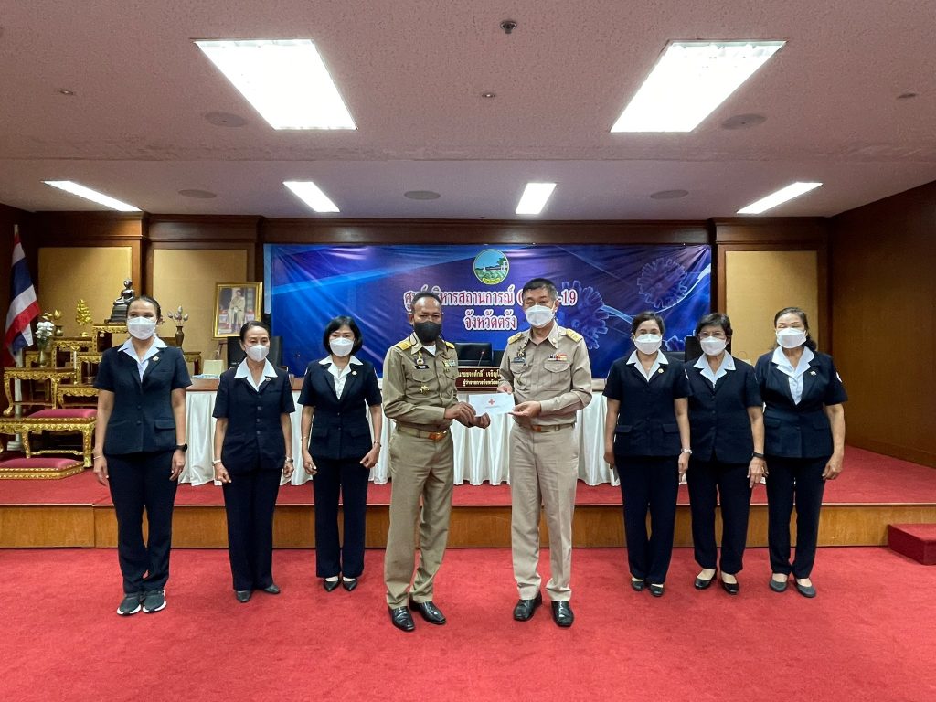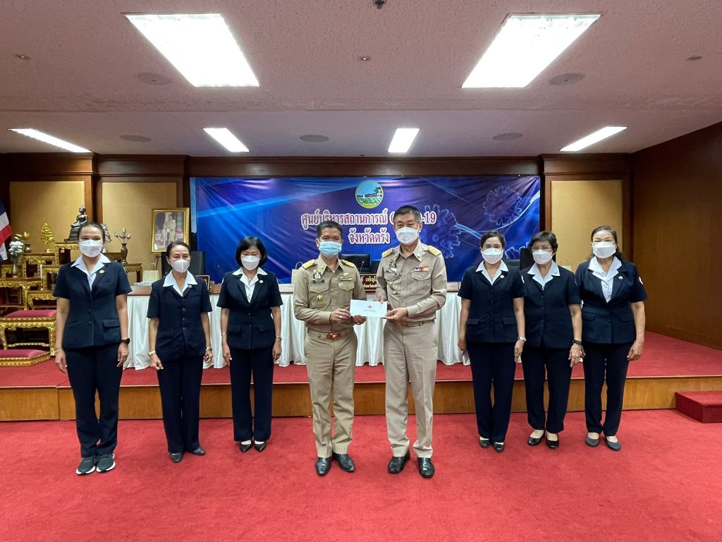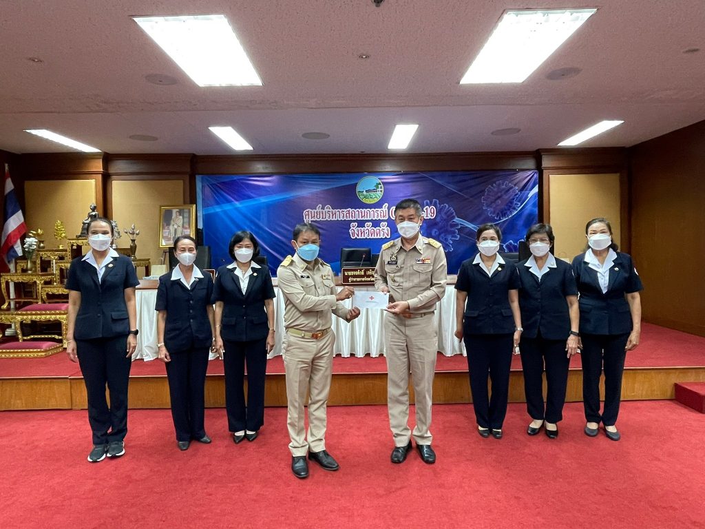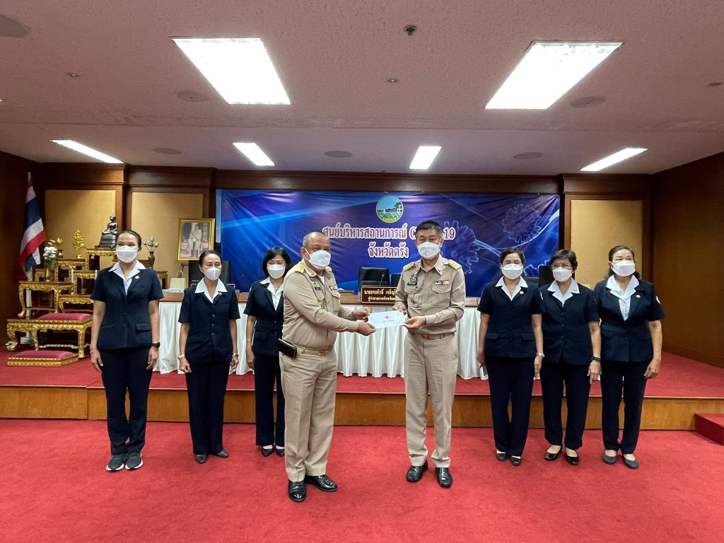 วันที่ 25 กุมภาพันธ์ 2565 นางละมัย เจริญโสภา นายกเหล่ากาชาดจังหวัดตรัง มอบหมายนางลักษณาพร อนันต์วรปัญญา รองนายกเหล่ากาชาดจังหวัดตรัง พร้อมด้วยกรรมการเหล่ากาชาดจังหวัดตรัง ร่วมมอบเงินตามโครงการบ้านกาชาดเฉลิมพระเกียรติ โครงการกาชาดร่วมใจ แบ่งปันความสุข ปรับปรุงที่อยู่อาศัยผู้ยากไร้ และโครงการส้วมดีมีสุข ประจำปีงบประมาณ 2565 ให้แก่อำเภอทั้ง 6 อำเภอ โดยมีนายขจรศักดิ์ เจริญโสภา ผู้ว่าราชการจังหวัดตรังเป็นประธานมอบเงิน ณ ห้องพระยารัษฎา ชั้น 5 ศาลากลางจังหวัดตรัง