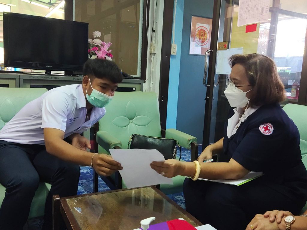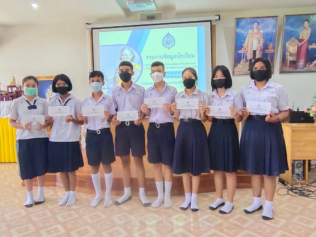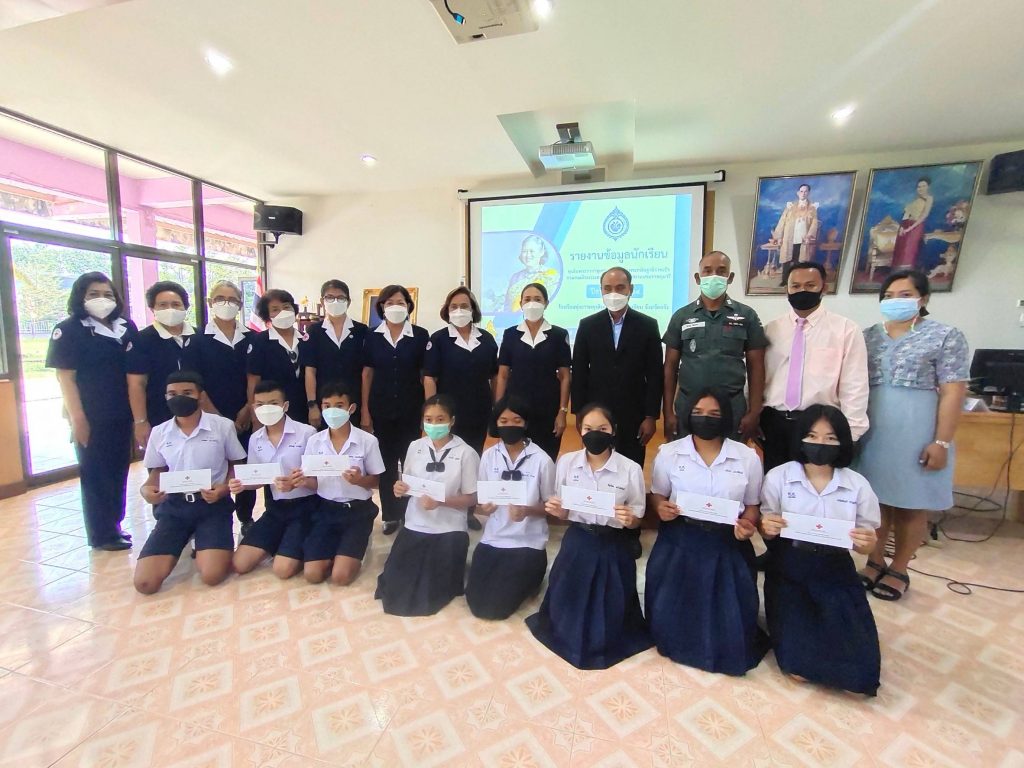วันที่ 22 กุมภาพันธ์ 2565 นางละมัย เจริญโสภา นายกเหล่ากาชาดจังหวัดตรัง มอบหมายนางมินตรา อรทัย รองนายกเหล่ากาชาดจังหวัดตรัง นางรัชนี ตันวิมลรัตน์ กรรมการหัวหน้าพันธกิจที่ 6 (งานในพระราชดำริ) พร้อมด้วยกรรมการในพันธกิจ ออกเยี่ยมนักเรียนในโครงการกาชาดห่วงใย ใส่ใจนักเรียนทุนในสมเด็จพระกนิษฐาธิราชเจ้า กรมสมเด็จพระเทพรัตนราชสุดาฯ สยามบรมราชกุมารี ประจำปี 2565 ณ โรงเรียนย่านตาขาวรัฐชนูปถัมภ์ วิทยาลัยการอาชีพปะเหลียน โรงเรียนทุ่งนาวผดุงศิษย์และโรงเรียนคันธพิทยาคาร พร้อมมอบเงินขวัญถุงให้นักเรียนในโครงการดังกล่าวด้วย