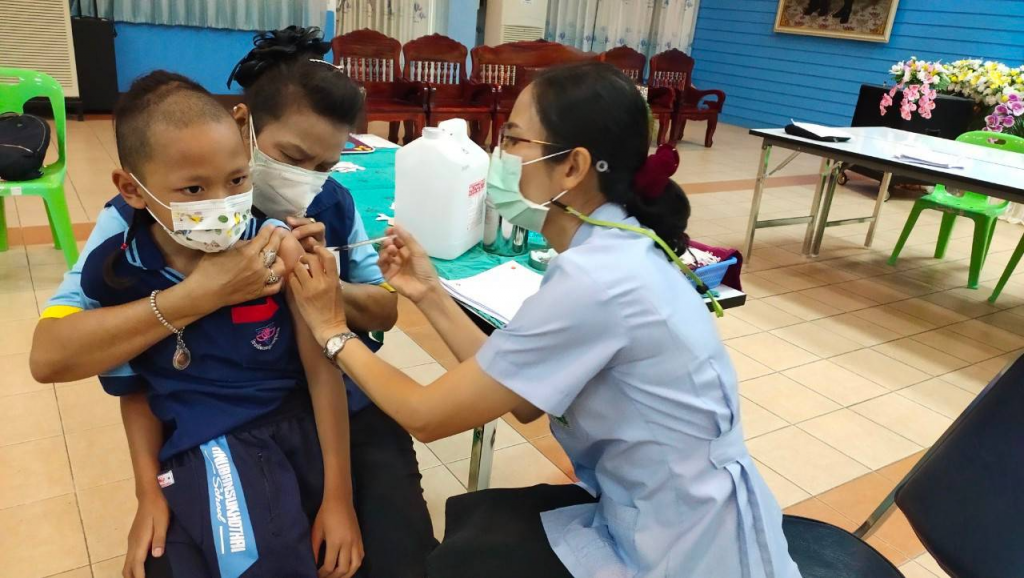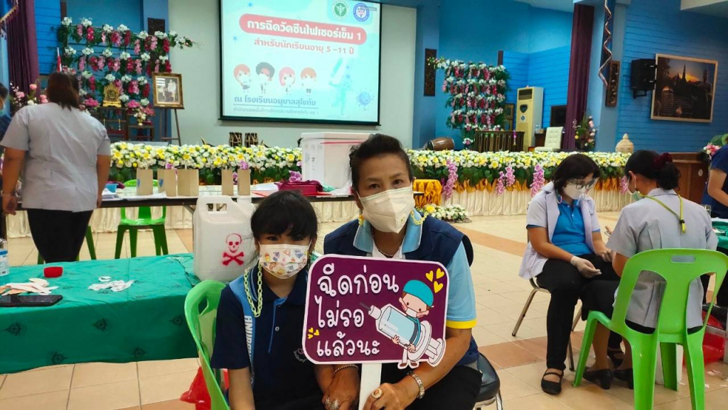 วันที่ 1 เมษายน 2565 นางกนกพร พรรณเทวี นายกเหล่ากาชาดจังหวัดสุโขทัย มอบหมายให้เจ้าหน้าที่เหล่ากาชาดจังหวัดสุโขทัย เยี่ยมและให้กำลังใจเด็กนักเรียนอายุ 5-11 ปี ที่เข้ารับการฉีดวัคซีนโควิด-19 โดยโรงพยาบาลสุโขทัย ได้ออกหน่วยเคลื่อนที่ให้บริการฉีดวัคซีนโควิด-19 เชิงรุก ให้กับเด็กอายุ 5-11 ปี เข้ารับบริการฉีดวัคซีน จำนวน 380 คน เพื่อสร้างภูมิคุ้มกันโรคโควิด-19 ให้กับเด็ก ณ หอประชุมโรงเรียนอนุบาลสุโขทัย อำเภอเมืองสุโขทัย จังหวัดสุโขทัย