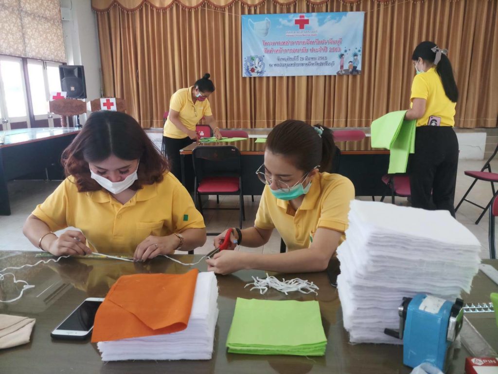 วันที่ 25 มีนาคม 2563 หอประชุมเหล่ากาชาดจังหวัดปราจีนบุรี นางอังคณา หัตถกิจโกศล นายกเหล่ากาชาดจังหวัดปราจีนบุรี พร้อมด้วย ที่ปรึกษา คณะกรรมการ และสมาชิกเหล่ากาชาดจังหวัดปราจีนบุรี ร่วมตัดเย็บหน้ากากอนามัยเพื่อนำไปแจกจ่ายให้ผู้ยากไร้ในพื้นที่