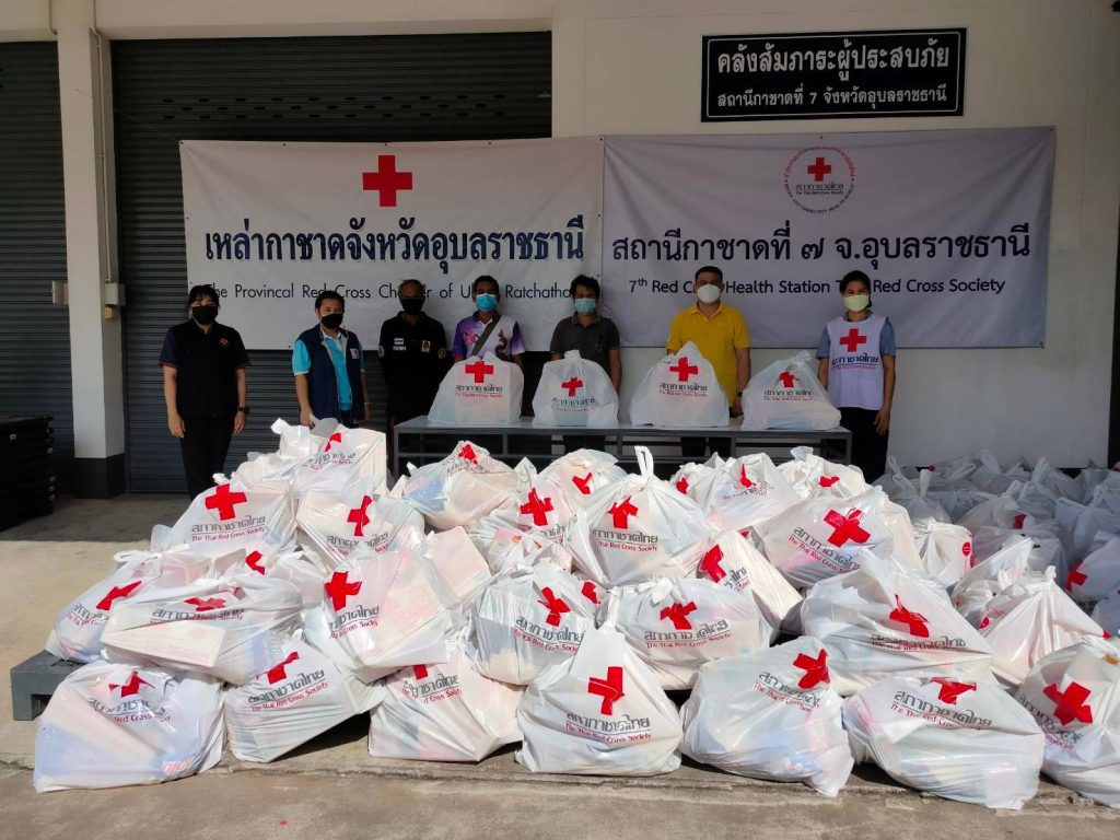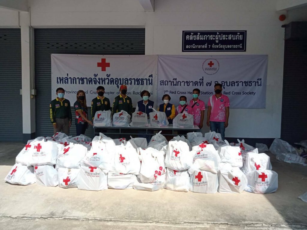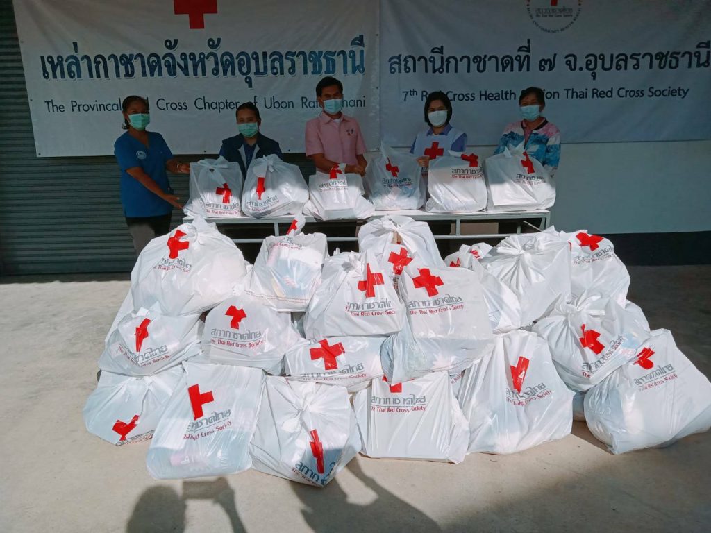 วันศุกร์ที่ 25 มีนาคม 2565 นางศลิษา ภิรมย์รัตน์ นายกเหล่ากาชาดจังหวัดอุบลราชธานี มอบหมายให้คณะกรรมการเหล่ากาชาดจังหวัดอุบลราชธานี และคณะเจ้าหน้าที่สถานีกาชาดที่ 7 จ.อุบลราชธานี เจ้าหน้าที่เหล่ากาชาดจังหวัดอุบลราชธานี บรรจุชุดธารน้ำใจและมอบชุดธารน้ำใจกู้ชีวิตฝ่าวิกฤตโควิด-19 จำนวน 297 ชุด ให้กับเจ้าหน้าที่อำเภอสิรินธร จังหวัดอุบลราชธานี เพื่อนำไปมอบให้กับผู้กักกันตน 14 วัน ในพื้นที่เขตอำเภอสิรินธร จังหวัดอุบลราชธานี ซึ่งได้รับผลกระทบจากการแพร่ระบาดของโรคโควิด-19 และเป็นผู้ที่มีความเสี่ยงสูง ทั้ง 297 คน ในลำดับต่อไป โดยอาสาสมัครสาธารณสุขประจำหมู่บ้าน (อสม.) คีย์ข้อมูลคำร้อง ขอความช่วยเหลือผ่านระบบ Application “พ้นภัย”