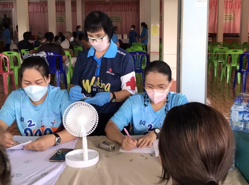 วันที่ 31 มีนาคม 2565 นางชุลีพร เตรัตน์ นายกเหล่ากาชาดจังหวัดตราด ส่งอาสาสมัครบริการฉีดวัคซีนป้องกันโควิด – 19 ประกอบด้วย นางศุภากร โกศลเศรษฐ์ ผู้ช่วยนายกเหล่ากาชาดจังหวัดตราด และนางธัญญา ชุมนุม กรรมการเหล่ากาชาดจังหวัดตราด ร่วมปฏิบัติงานบริการฉีดวัคซีนป้องกันโควิด – 19 ณ วัดห้วงน้ำขาว ตำบลห้วงน้ำขาว อำเภอเมืองตราด จังหวัดตราด ซึ่งสำนักงานสาธารณสุขอำเภอเมืองตราด ร่วมกับโรงพยาบาลตราด เปิดให้บริการฉีดวัคซีนป้องกันโควิด – 19 Pfizer และ Astrazeneca เข็มที่ 1 2 3 และ 4 สำหรับผู้พิการ ผู้สูงอายุ ผู้ป่วย เด็ก นักเรียน และประชาชนทั่วไป จำนวน 588 คน โดยมี นายภิรมย์ ชุมนุม นายอำเภอเมืองตราด ให้การต้อนรับ ร่วมให้กำลังใจเจ้าหน้าที่ผู้ปฏิบัติงาน