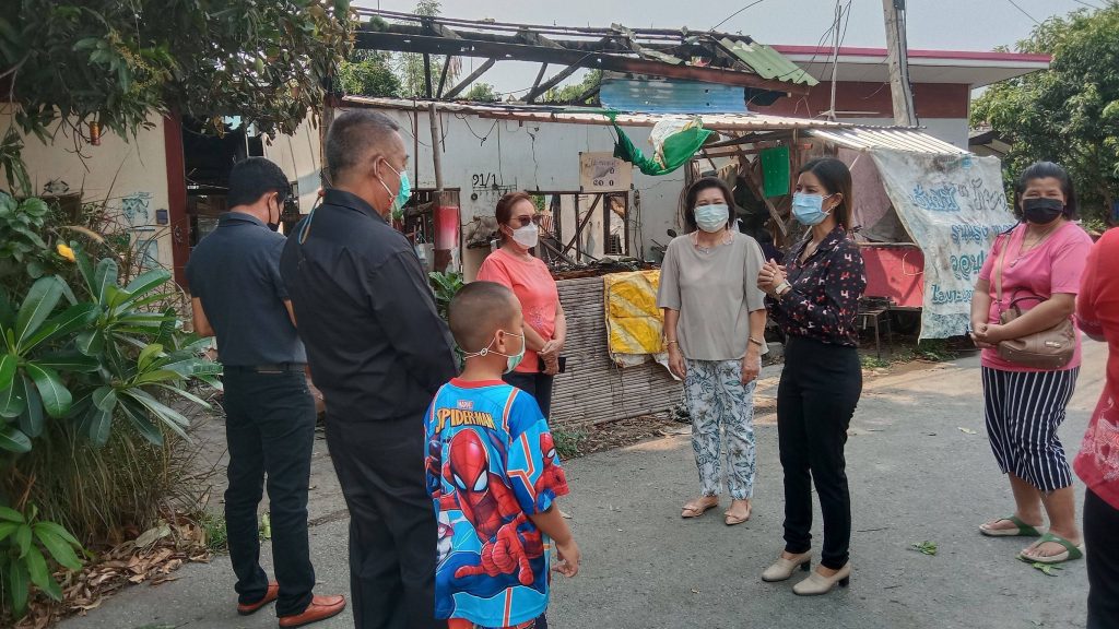 อยู่บ้านเลขที่ 91/2 ถ.หลังวัดพรมสาคร ต.บางพุทรา อ.เมืองสิงห์บุรี จ.สิงห์บุรี และนายสิทธิพร ทองวิลัย บ้านเลขที่ 88/9 ถ.หลังวัดพรมสาคร ต.บางพุทรา อ.เมืองสิงห์บุรี จ.สิงห์บุรี พร้อมมอบเครื่องอุปโภค-บริโภค รายละ 1 ชุด ซึ่งทั้งสองรายได้รับผลกระทบจากเหตุเพลิงไหม้บ้านของนายประคอง ขันจำนงค์ บ้านเลขที่ 91/1 ถ.หลังวัดพรมสาคร ต.บางพุทรา อ.เมือง จ.สิงห์บุรี ซึ่งไหม้ทั้งหลัง โดยนายประคอง ขันจำนงค์ ได้รับบาดเจ็บจากเหตุเพลิงไหม้ดังกล่าว และพักรักษาตัวอยู่ ณ โรงพยาบาลสิงห์บุรี อ.เมือง จ.สิงห์บุรี ทั้งนี้ เทศบาลเมืองสิงห์บุรี อยู่ระหว่างการให้ความช่วยเหลือในเบื้องต้น