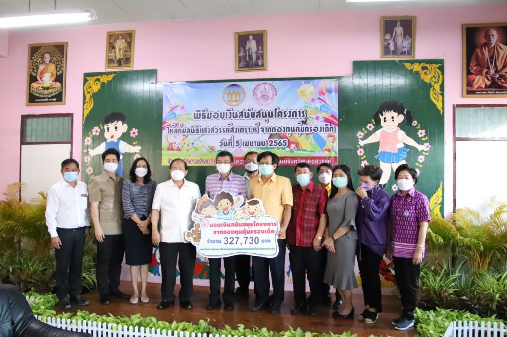 วันที่ 5 เมษายน 2565 ทันตแพทย์หญิงศิริรัตน์ ศิริมาศ นายกเหล่ากาชาดจังหวัดนครสวรรค์ มอบหมายให้นางรัตนา เดชพันธุ์ รองนายกเหล่ากาชาดจังหวัดนครสวรรค์ พร้อมด้วยคณะกรรมการและสมาชิกเหล่ากาชาดจังหวัดนครสวรรค์ ร่วมพิธีมอบเงินสนับสนุนโครงการสงเคราะห์เด็กกำพร้าและเด็กถูกทอดทิ้ง ให้แก่มูลนิธิแสงสวรรค์สงเคราะห์ จากกองทุนคุ้มครองเด็ก จำนวน 327,730 บาท (สามแสนสองหมื่นเจ็ดพันเจ็ดร้อยสามสิบบาทถ้วน) โดยมีนายชยันต์ ศิริมาศ ผู้ว่าราชการจังหวัดนครสวรรค์ เป็นประธานในพิธี ทั้งนี้นางอรุณี เต็งสุวรรณ์ พัฒนาสังคมและความมั่นคงของมนุษย์จังหวัดนครสสวรรค์ เป็นผู้กล่าวรายงานวัตถุประสงค์ฯ ในการนี้ เหล่ากาชาดจังหวัดนครสวรรค์ได้นำผลิตภัณฑ์ นมยูเอชที จำนวน 10 ลัง และชุดอุปกรณ์กีฬา มอบให้กับมูลนิธิแสงสวรรค์สงเคราะห์ เพื่อร่วมสนับสนุนการเรียนรู้และคุณภาพชีวิตของเด็กๆ ในมูลนิธิฯ ณ มูลนิธิแสงสวรรค์สงเคราะห์ อำเภอเมือง จังหวัดนครสวรรค์