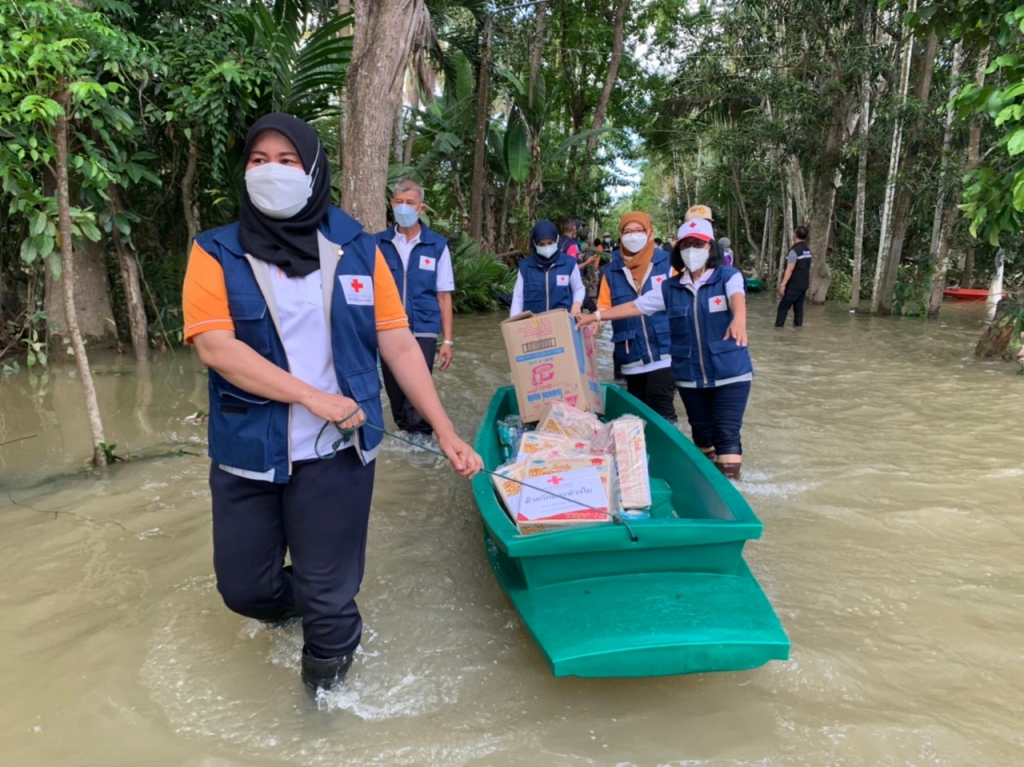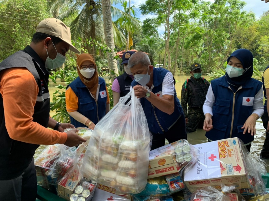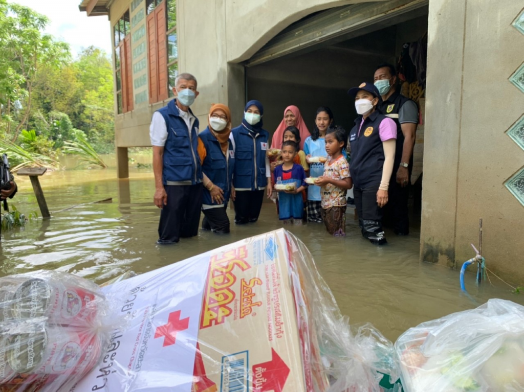 วันที่ 1 มีนาคม 2565 ผศ.ดร.ทิพยวรรณ นิลทยา นายกเหล่ากาชาดจังหวัดยะลา มอบหมายให้ นางอาสีกี บุญโรภาคย์ กรรมการเหล่ากาชาดจังหวัดยะลา/ภริยานายอำเภอรามัน และสมาชิกเหล่ากาชาดจังหวัดยะลา ร่วมกับ นายณัฎฐ์กร บุญโรภาคย์ นายอำเภอรามัน ผู้นำท้องถิ่น ลงพื้นที่มอบถุงยังชีพน้ำดื่ม ข้าวกล่อง ขนม เเละยาสามัญประจำบ้าน ให้เเก่ผู้ประสบอุทกภัยในพื้นที่ หมู่ 5 ตำบลอาซ่อง อำเภอรามัน จังหวัดยะลา จำนวน 120 หลังคาเรือน เพื่อเป็นขวัญกำลังใจ