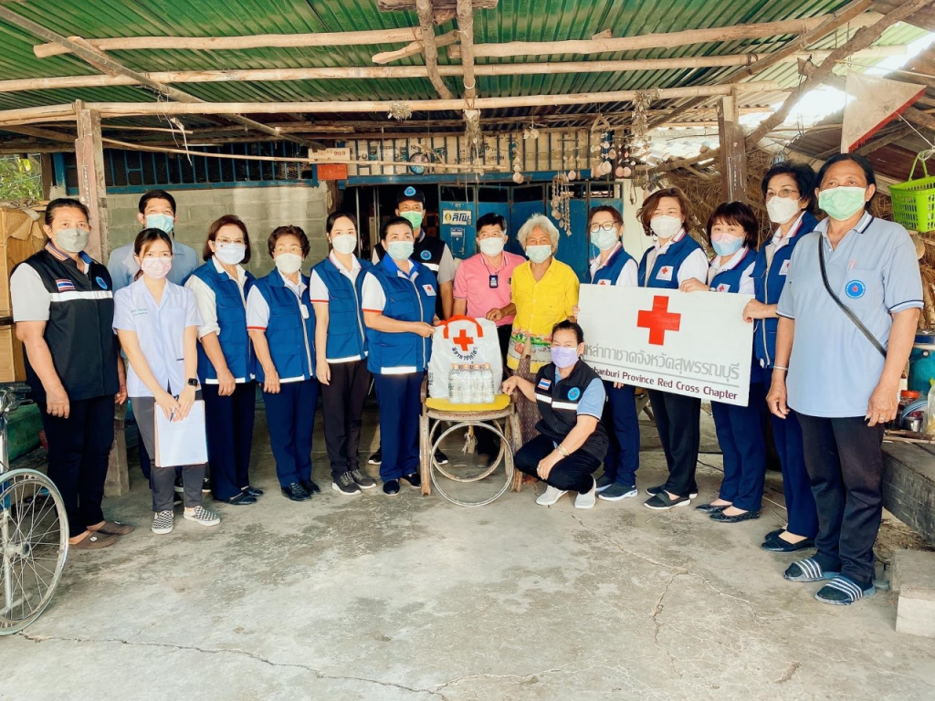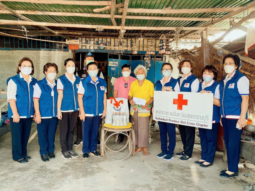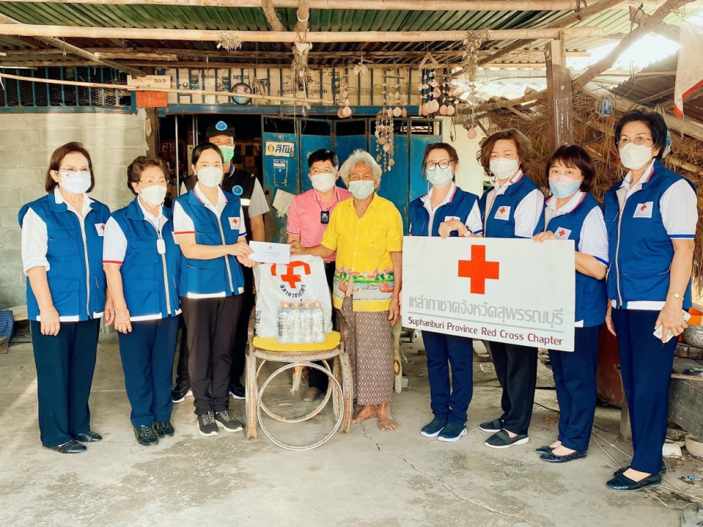 วันที่ 11 มกราคม 2565 นางนภัสสร สุวรรณประทีป นายกเหล่ากาชาดจังหวัดสุพรรณบุรี นางฐิติพร ศิริโกศล รองนายกเหล่ากาชาดจังหวัด พร้อมด้วยที่ปรึกษาและกรรมการเหล่ากาชาดจังหวัด ลงพื้นที่เยี่ยมให้กำลังใจผู้ยากไร้ ราย นางสวงค์ สิงห์ส่ง อายุ 77 ปี โดย เหล่ากาชาดจังหวัดสุพรรณบุรี มอบเครื่องอุปโภค – บริโภค จำนวน 1 ชุด คุณรัชนี สุจิตต์ พร้อมคณะ มอบเงินช่วยเหลือ จำนวน 500 บาท และน้ำดื่ม ขนาด 600 มิลลิลิตร จำนวน 1 แพ็ค ณ บ้านเลขที่ 126 ม.8 ต.สระแก้ว อ.เมืองสุพรรณบุรี จ.สุพรรณบุรี