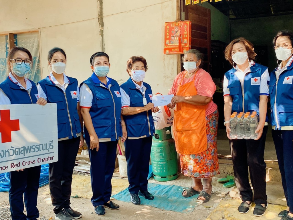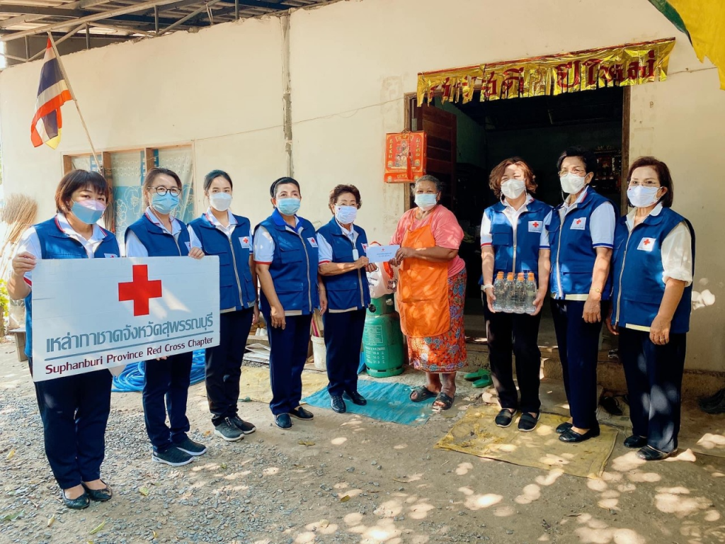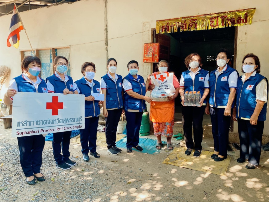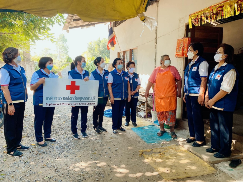 วันที่ 11 มกราคม 2565 นางนภัสสร สุวรรณประทีป นายกเหล่ากาชาดจังหวัดสุพรรณบุรี นางฐิติพร ศิริโกศล รองนายกเหล่ากาชาดจังหวัด พร้อมด้วยที่ปรึกษาและกรรมการเหล่ากาชาดจังหวัด ลงพื้นที่เยี่ยมให้กำลังใจผู้ยากไร้ ราย นางราบ มาลาวงษ์ อายุ 95 ปี โดย เหล่ากาชาดจังหวัดสุพรรณบุรี มอบเครื่องอุปโภค – บริโภค จำนวน 1 ชุด คุณรัชนี สุจิตต์ พร้อมคณะ มอบเงินช่วยเหลือ จำนวน 500 บาท และน้ำดื่ม ขนาด 600 มิลลิลิตร จำนวน 1 แพ็ค ณ บ้านเลขที่ 190/1 ม.8 ต.สระแก้ว อ.เมืองสุพรรณบุรี จ.สุพรรณบุรี
