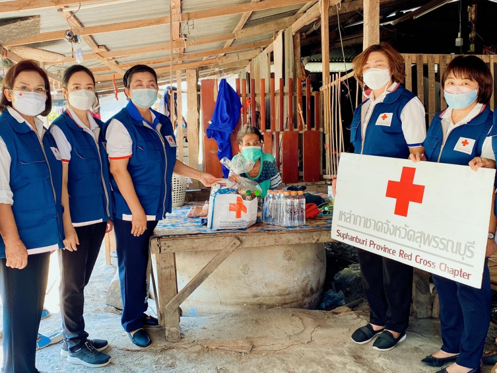 วันที่ 11 มกราคม 2565 นางนภัสสร สุวรรณประทีป นายกเหล่ากาชาดจังหวัดสุพรรณบุรี นางฐิติพร ศิริโกศล รองนายกเหล่ากาชาดจังหวัด พร้อมด้วยที่ปรึกษาและกรรมการเหล่ากาชาดจังหวัด ลงพื้นที่เยี่ยมให้กำลังใจผู้ยากไร้ ราย นางฟู นาคโชติ อายุ 89 ปี โดย เหล่ากาชาดจังหวัดสุพรรณบุรี มอบเครื่องอุปโภค – บริโภค จำนวน 1 ชุด คุณรัชนี สุจิตต์ พร้อมคณะ มอบเงินช่วยเหลือ จำนวน 500 บาท และน้ำดื่ม ขนาด 600 มิลลิลิตร จำนวน 1 แพ็ค ณ บ้านเลขที่ 41 ม.4 ต.สระแก้ว อ.เมืองสุพรรณบุรี จ.สุพรรณบุรี