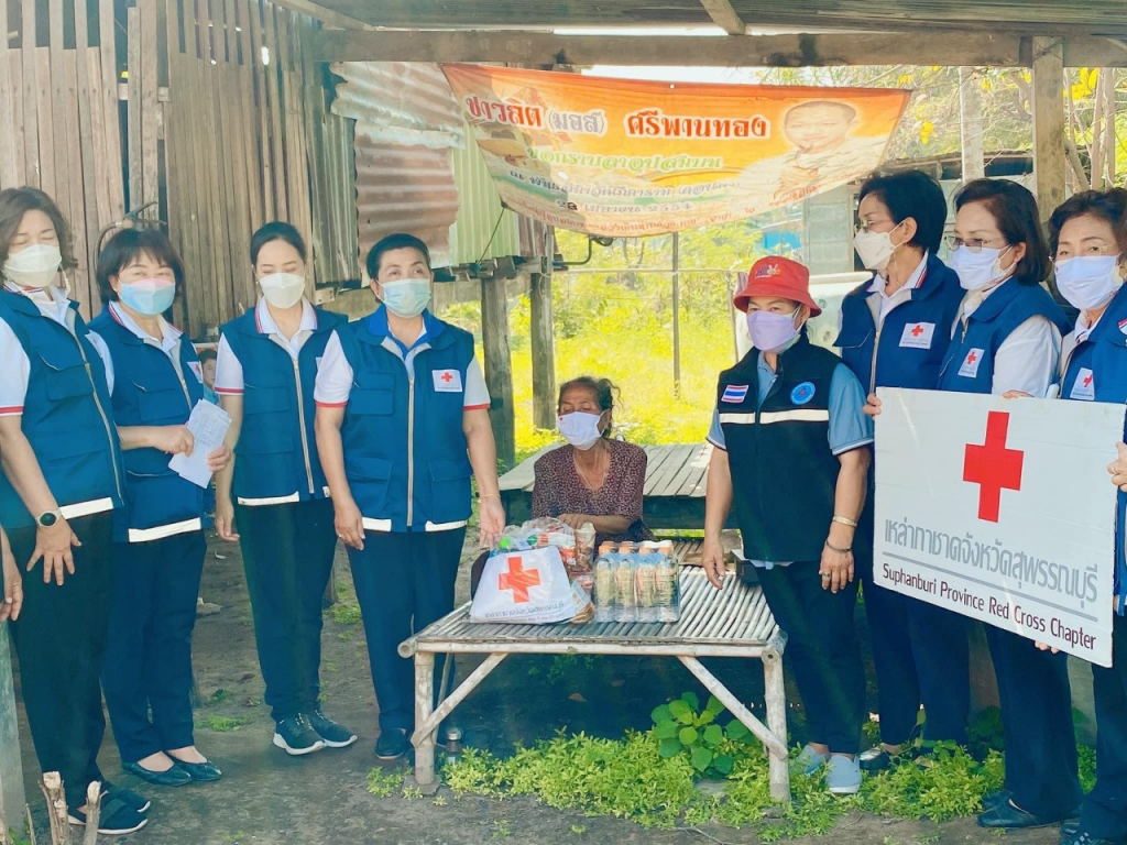 วันที่ 11 มกราคม 2565 นางนภัสสร สุวรรณประทีป นายกเหล่ากาชาดจังหวัดสุพรรณบุรี นางฐิติพร ศิริโกศล รองนายกเหล่ากาชาดจังหวัด พร้อมด้วยที่ปรึกษาและกรรมการเหล่ากาชาดจังหวัด ลงพื้นที่เยี่ยมให้กำลังใจผู้ยากไร้ ราย นางยม จงเจริญ อายุ 72 ปี โดย เหล่ากาชาดจังหวัดสุพรรณบุรี มอบเครื่องอุปโภค – บริโภค จำนวน 1 ชุด คุณรัชนี สุจิตต์ พร้อมคณะ มอบเงินช่วยเหลือ จำนวน 500 บาท และน้ำดื่ม ขนาด 600 มิลลิลิตร จำนวน 1 แพ็ค ณ บ้านเลขที่ 229 ม.4 ต.สระแก้ว อ.เมืองสุพรรณบุรี จ.สุพรรณบุรี