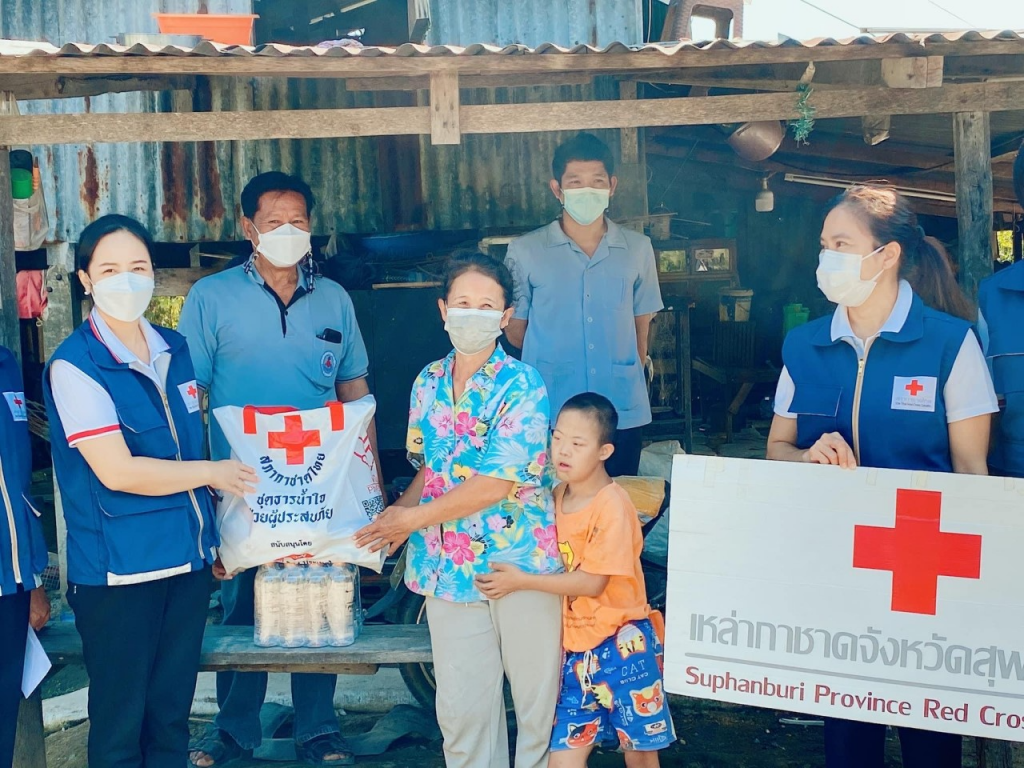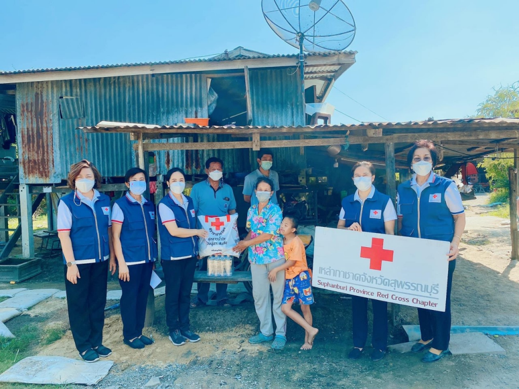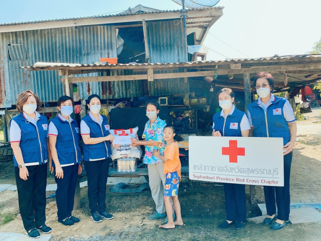 วันอังคารที่ 11 มกราคม 2565 นางนภัสสร สุวรรณประทีป นายกเหล่ากาชาดจังหวัดสุพรรณบุรี นางฐิติพร ศิริโกศล รองนายกเหล่ากาชาดจังหวัด พร้อมด้วยที่ปรึกษา กรรมการ และสมาชิกเหล่ากาชาดจังหวัด ลงพื้นที่เยี่ยมให้กำลังใจผู้ยากไร้ ราย นางสาวจำเรียง แสนไชย อายุ 52 ปี โดย เหล่ากาชาดจังหวัดสุพรรณบุรี มอบเครื่องอุปโภค – บริโภค จำนวน 1 ชุด คุณรัชนี สุจิตต์ พร้อมคณะ มอบเงินช่วยเหลือ จำนวน 500 บาท และน้ำดื่ม ขนาด 600 มิลลิลิตร จำนวน 1 แพ็ค ณ บ้านเลขที่ 126 ม.9 ต.สระแก้ว อ.เมืองสุพรรณบุรี จ.สุพรรณบุรี