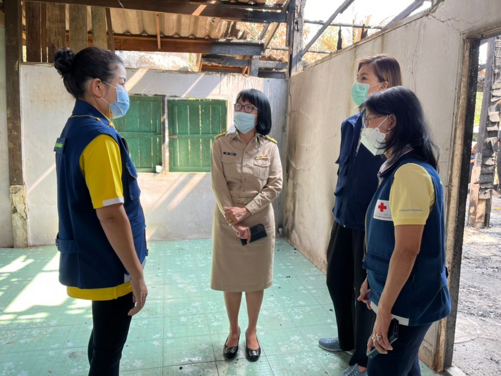 วันที่ 17 มกราคม 2565นางชุลีพร เตรัตน์ นายกเหล่ากาชาดจังหวัดตราด พร้อมด้วยคณะกรรมการและสมาชิกเหล่ากาชาดจังหวัดตราด สมาชิกชมรมแม่บ้านมหาดไทย จังหวัดตราด พัฒนาสังคมและความมมั่นคงของมนุษย์จังหวัดตราด และผู้แทนป้องกันและบรรเทาสาธารณภัย จังหวัดตราด ออกเยี่ยมให้กำลังใจผู้ประสบอัคคีภัย ราย นางสาวศศิกานต์ เสงี่ยมกลาง ณ บ้านเลขที่ 107 ม. 1 ต.ด่านชุมพล อ.บ่อไร่ จ.ตราด ซึ่งเกิดเหตุไฟไหม้ได้รับความเสียหายทั้งหลัง เหตุเกิดเมื่อวันที่ 14 มกราคม 2565 โดยมีนายกองค์การบริหารส่วนตำบลด่านชุมพล พร้อมด้วยผู้นำท้องถิ่น เจ้าหน้าที่ทหาร เจ้าหน้าที่ตำรวจ เจ้าหน้าที่ฝ่ายปกครอง และประชาชนจิตอาสา ร่วมให้การต้อนรับ เหล่ากาชาดจังหวัดตราดได้มอบเงินช่วยเหลือ จำนวน 9,500 บาท ถุงยังชีพ จำนวน 1 ชุด และข้าวสาร จำนวน 10 กิโลกรัม ซึ่งมีความช่วยเหลือจากหน่วยงานอื่น ๆ ร่วมสมทบในครั้งนี้ด้วย สำหรับการฟื้นฟูหลังเกิดเหตุ อยู่ในขั้นตอนการพิจารณางบประมาณจากภาครัฐ ซึ่งมีประชาชนผู้ใจบุญร่วมกันบริจาควัสดุก่อสร้าง และได้รับกำลังแรงงานสนับสนุนจากหน่วยงานทหาร เพื่อดำเนินการสร้างบ้านพักอาศัยหลังใหม่ให้แล้วเสร็จต่อไป