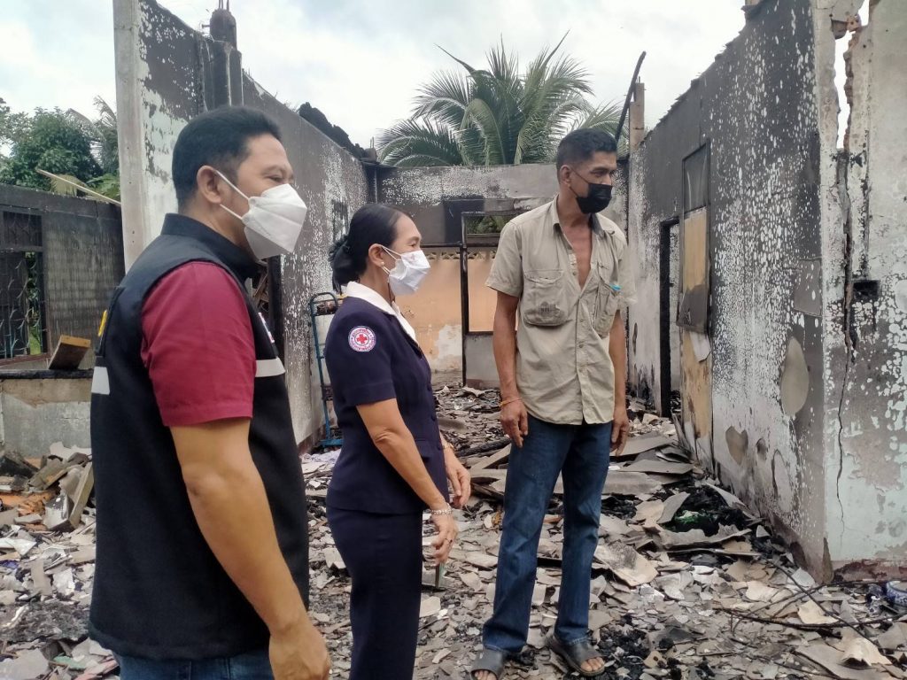วันที่ 5 มกราคม 2565 นางละมัย เจริญโสภา นายกเหล่ากาชาดจังหวัดตรังมอบหมายให้คณะกรรมการเหล่ากาชาด สมาชิกและเจ้าหน้าที่ลงพื้นที่เยี่ยมเยียนให้กำลังใจราษฎรที่ประสบอัคคีภัย ตามโครงการเหล่ากาชาดจังหวัดตรัง ปันน้ำใจผู้ประสบภัย ประจำปีงบประมาณ 2565 ณ บ้านเลขที่ 144 ม.1 ต.ท่างิ้ว อ.ห้วยยอด จ.ตรัง ซึ่งเป็นบ้านของนายบุญให้ ปานนิล อายุ 82 ปี เจ้าของบ้าน เกิดเหตุเพลิงไหม้เมื่อวันที่ 17 ธันวาคม 2564 เวลาประมาณ 23.00 น. ในการนี้ เหล่ากาชาดจังหวัดตรัง มอบชุดธารน้ำใจ ชุดหม้อ ผ้าห่ม และเงินช่วยเหลือ เพื่อเป็นการช่วยเหลือในเบื้องต้น
